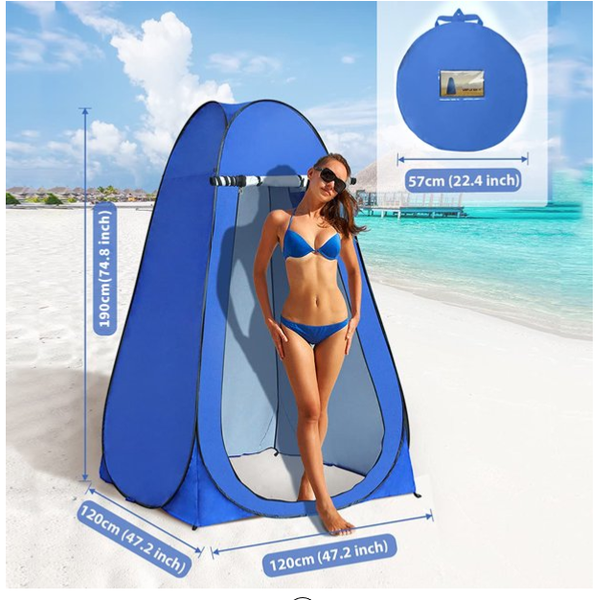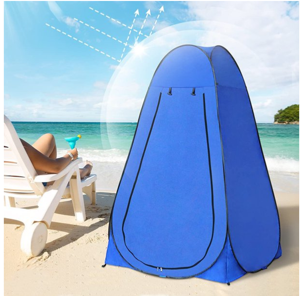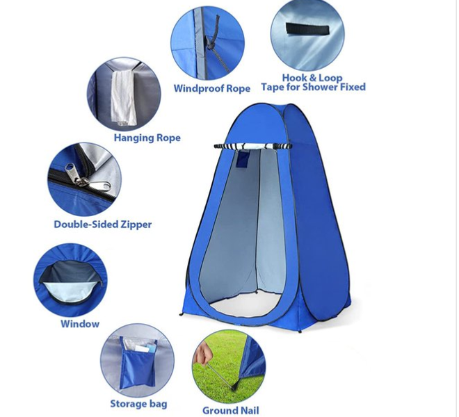 Многофункциональность. Эта всплывающая душевая палатка очень легкая и удобная для переноски. Он может предоставить вам мгновенное личное пространство на открытом воздухе, например, ванную комнату для кемпинга, раздевалку на пляже или для съемки на открытом воздухе, туалет для кемпинга на открытом воздухе, душ для кемпинга, укрытия для уединения для пляжной рыбалки и т. д.