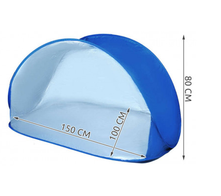 Пляжная палатка полуоткрытая POP UP представляет собой идеальное сочетание зонта и ширмы, но гораздо удобнее в использовании и занимает гораздо меньше места, что, как известно, немаловажно при упаковке багажа. Спасает от ветра и чрезмерного солнца , а снизу от сырости и песка на пляже. Покрытие палатки отлично защищает от вредного ультрафиолетового излучения. Это важно, если вы идете на пляж с детьми и хотите обеспечить ребенку безопасный отдых и тень, вы можете надежно спрятать в нем свои вещи, не опасаясь, что ваша сумка или одежда окажется вся в песке, а еда сварится. Это также позволит вам свободно читать книгу и полноценно отдыхать.