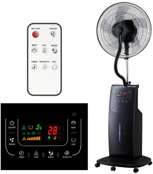 Наиболее важные особенности: 3 уровня скорости: низкий/средний/высокий Увлажнение и ионизация воздуха Функция отпугивания комаров Резервуар для воды 3,1 л Контейнер для льда Контейнер для аромата 12-часовой таймер Поворотная головка: 75° Сенсорная панель (сенсорная панель управления) + пульт дистанционного управления Стабильная база Черный цвет