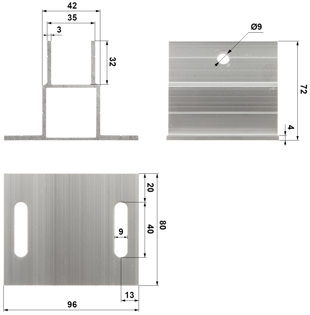 The USP-UDMK-P front mounting base is used to attach the USP-SM mounting profile to the concrete ballast block;