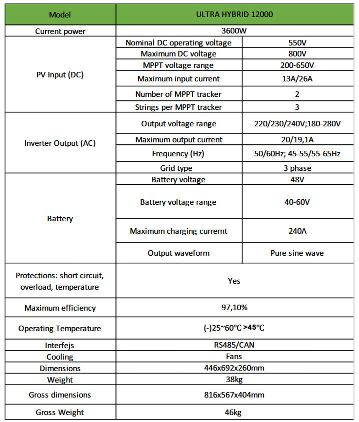 • 5 режимов работы: режим «Накопитель», режим «Сначала нагрузка», режим «Аккумулятор», режим «Сначала сеть» и