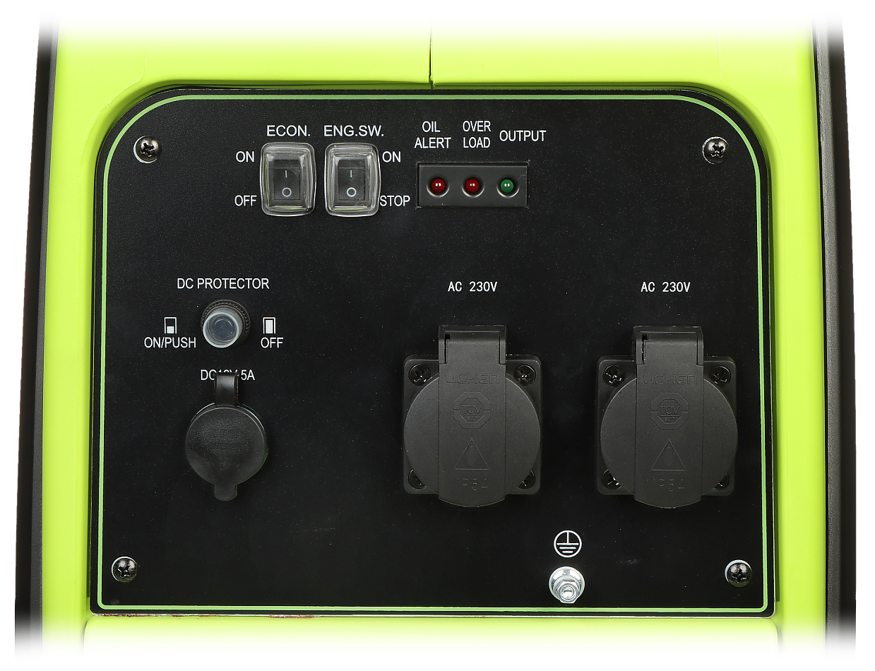Nominal power: 3000 W ; Maximum power: 3300 W ; Output voltage: 230 V AC ; Number of outlets: 2 pcs - single-phase ; Voltage stabilization: Inverter (provides full voltage stabilization) ; 12V DC output; Starting the engine: Manual ;