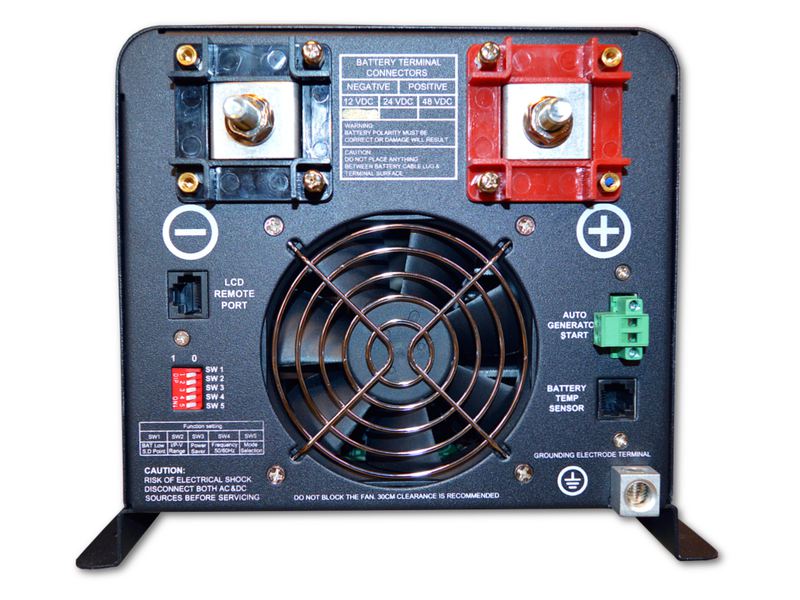 • Постоянная мощность: 3000 Вт • Мгновенная мощность: 9000 ВА • Форма волны выходного напряжения: чистый синус. • КПД инвертора: 88% • КПД при работе от сети:> 95% • Коэффициент PFC: 0,9–1,0 • Выходное напряжение RMS: 230 В переменного тока • Регулировка выходного напряжения: ± 10% RMS • Выходная частота: 50 ± 0,3 Гц • Защита от короткого замыкания: Да, с функцией ограничения тока через 1 с. • Типичное время передачи данных от сети / аккумулятора: 10 мс (макс.) • THD: <10%