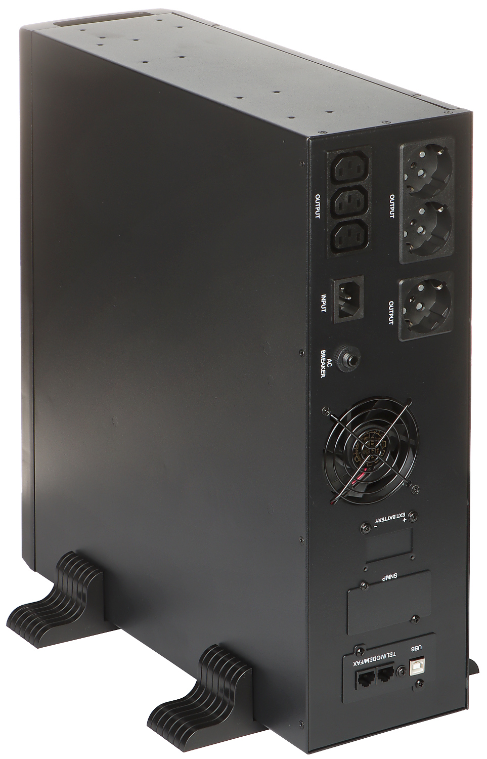 Nominal power: 1600 W ; Apparent Power: 2000 VA ; Estimated battery operation time: 67 minutes @ 100 W, 37 minutes @ 200 W, 27 minutes @ 300 W, 17 minutes @ 400 W, 12 minutes @ 500 W, 6.5 minutes @ 800 W, 5 minutes @ 900 W, 4 minutes @ 1000 W, 2.5 minutes @ 1200 W ; Number of outputs: 6 pcs ; Operation state indication: LCD display: operation mode, battery charging level, in/out voltage level, overload indicator, LED diodes, Sound signaling ;