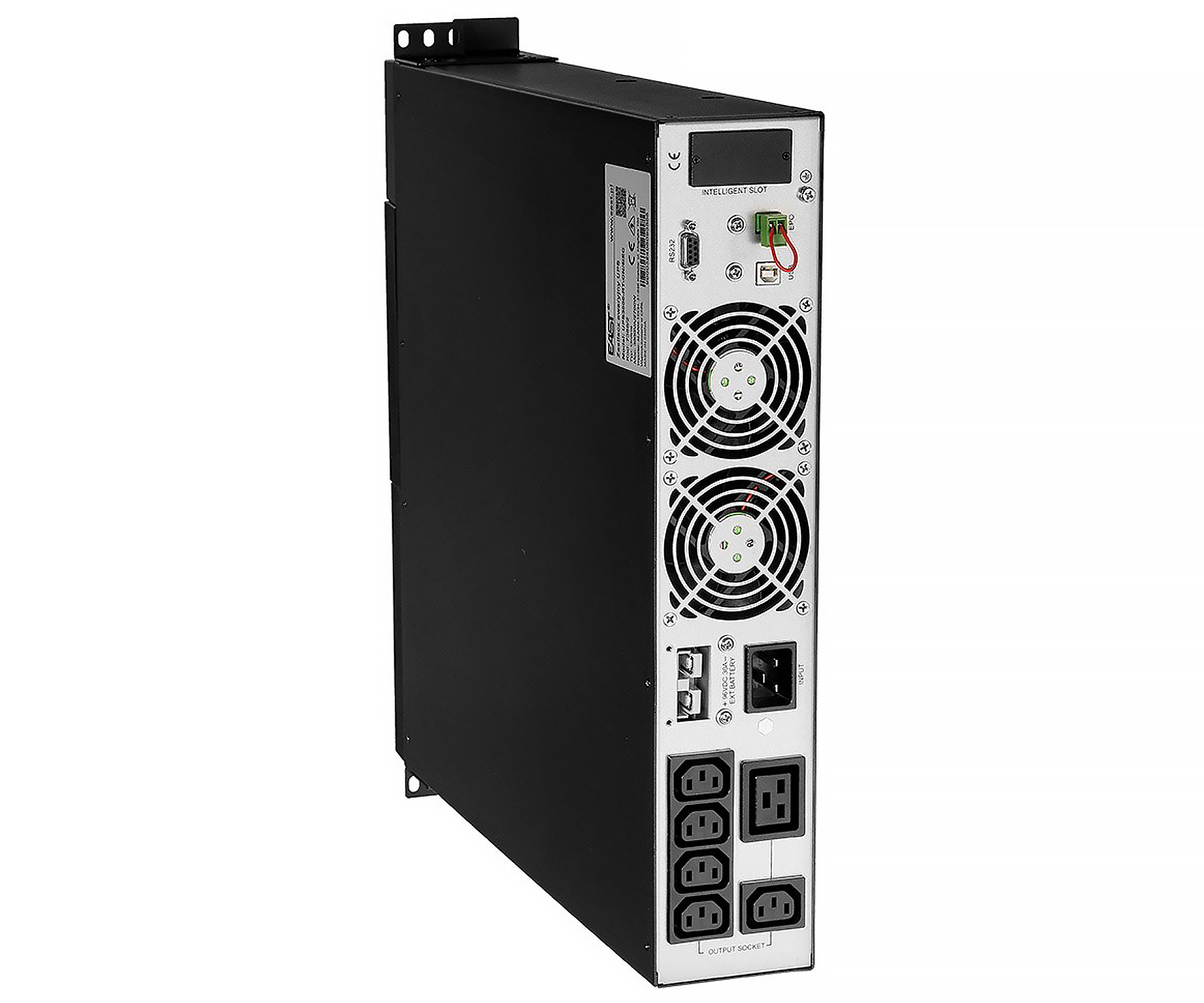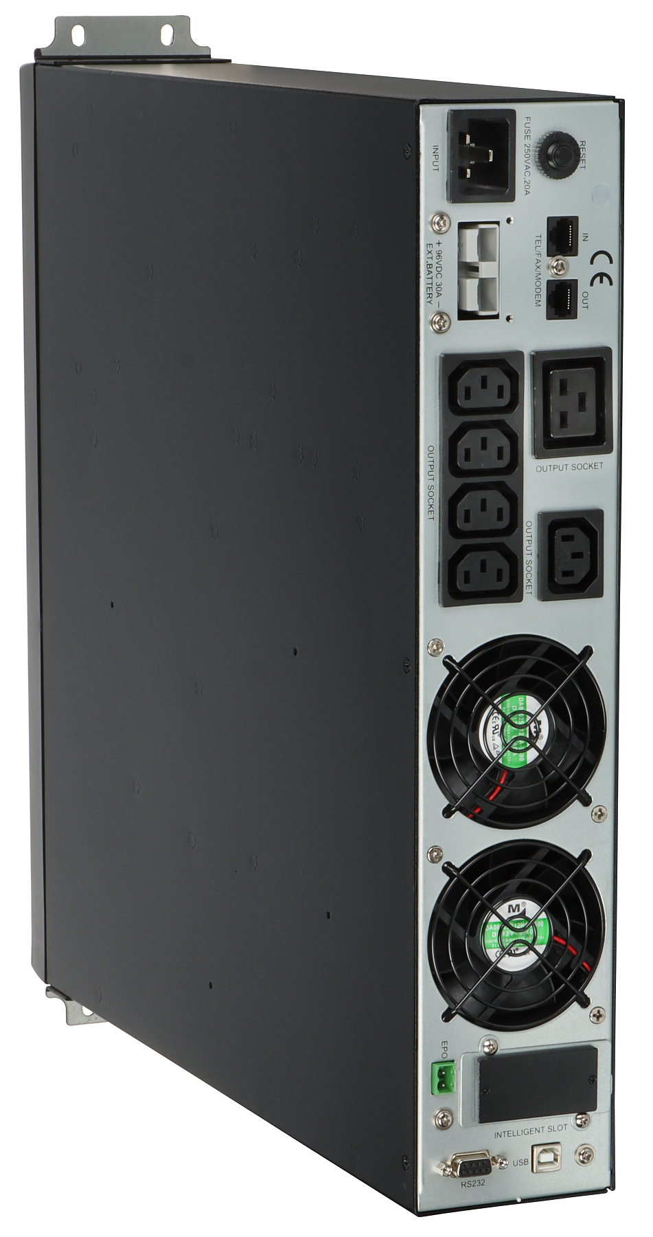 Nominal power: 2700 W ; Apparent Power: 3000 VA ; Estimated battery operation time: 120 minutes @ 200 W, 60 minutes @ 400 W, 40 minutes @ 600 W, 25 minutes @ 800 W, 20 minutes @ 1000 W, 12.5 minutes @ 1200 W, 9 minutes @ 1600 W, 7.5 minutes @ 1800 W, 6.5 minutes @ 2000 W, 5 minutes @ 2400 W, 4 minutes @ 2700 W ; Number of outputs: 6 pcs IEC-320 C13 ; Operation state indication: LCD display: operation mode, battery charging level, in/out voltage level, overload indicator, Sound signaling ;