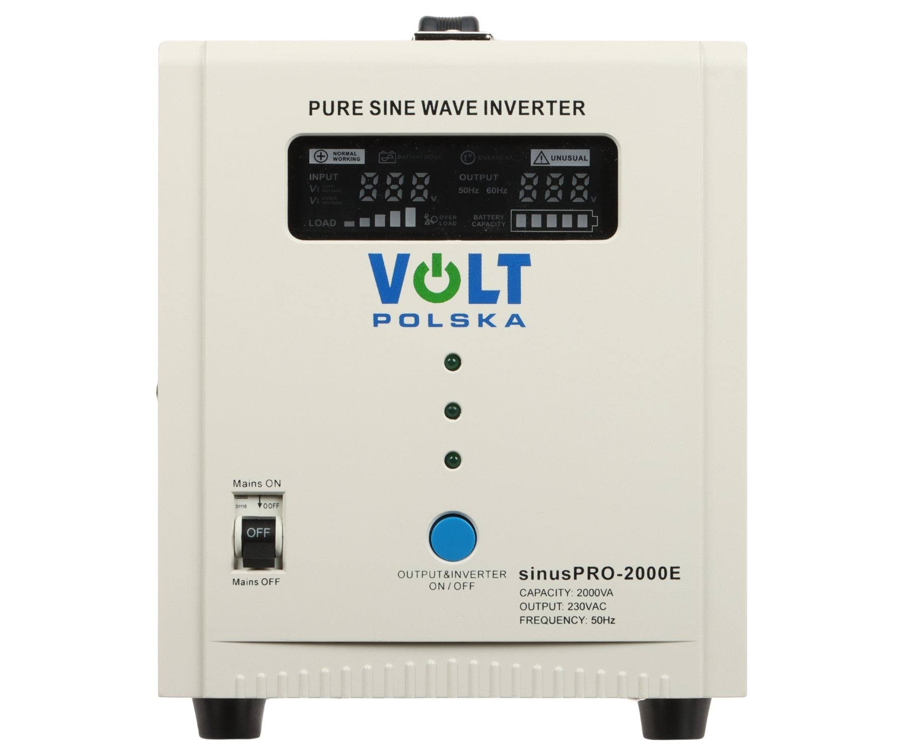 Output voltage shape: Pure Sine Wave ; Nominal power: 1250 W ; Apparent Power: 2000 VA ; Number of outputs: 2 pcs ; Operation state indication: LED display ;