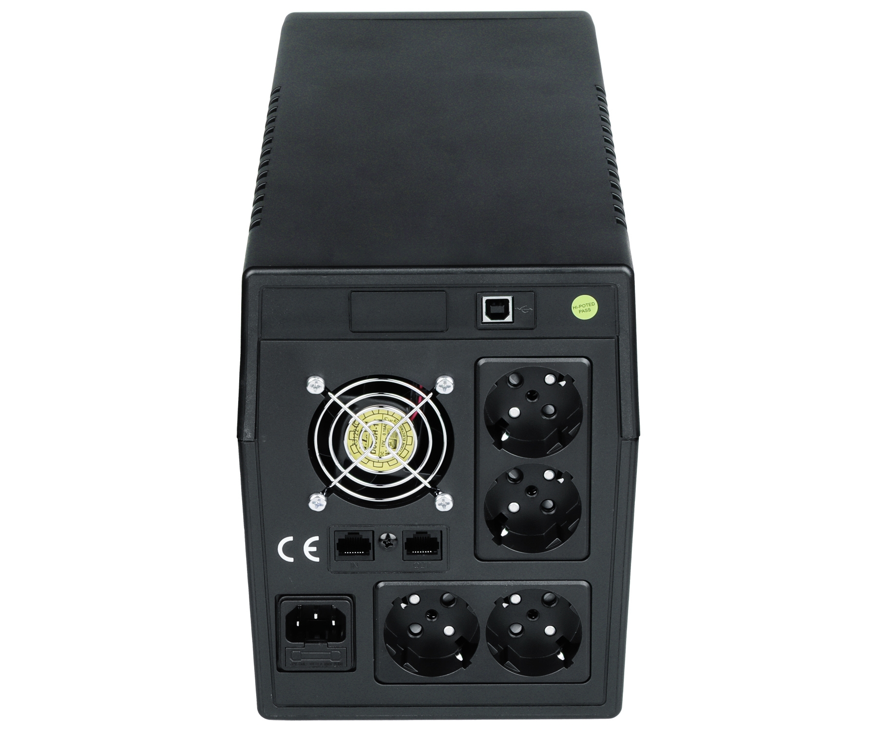 Output voltage shape: Pure Sine Wave ; Nominal power: 1400 W ; Apparent Power: 2000 VA ; Battery: 2 pcs ; Estimated battery operation time: ≤ 60 minutes - depending on the load ; Number of outputs: 4 pcs CEE 7/3 (Schuko) ; Operation state indication: LCD display: operation mode, battery charging level, in/out voltage level, Work load, Overload signaling, Failure signaling, Low battery level alarm, Sound signaling ;