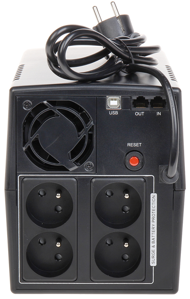 Nominal power: 1320 W ; Apparent Power: 2200 VA ; Battery: 2 pcs 12 V / 9 Ah ; Estimated battery operation time: 95 minutes @ 60 W, 70 minutes @ 90 W, 34 minutes @ 200 W ; Number of outputs: 4 pcs CEE 7/5 ; Operation state indication: LED diodes, Sound signaling ;