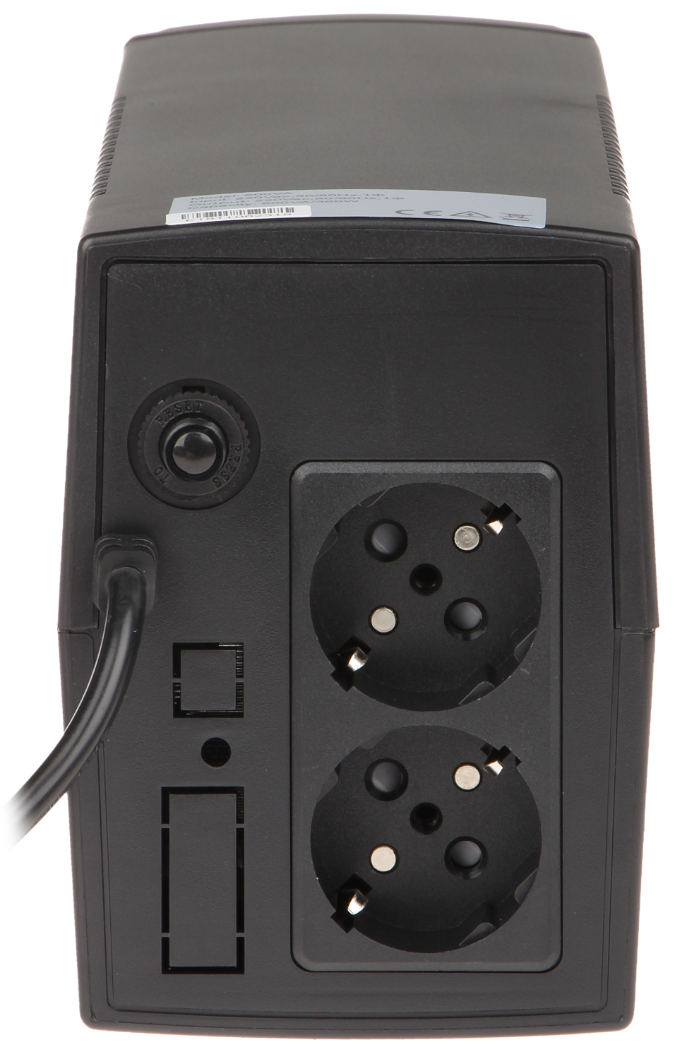 Nominal power: 390 W ; Apparent Power: 650 VA ; Battery: 1 pcs ; Estimated battery operation time: 19 minutes @ 100 W, 6 minutes @ 200 W, 2 minutes @ 300 W ; Number of outputs: 2 pcs ; Operation state indication: LED diodes, Sound signaling ;