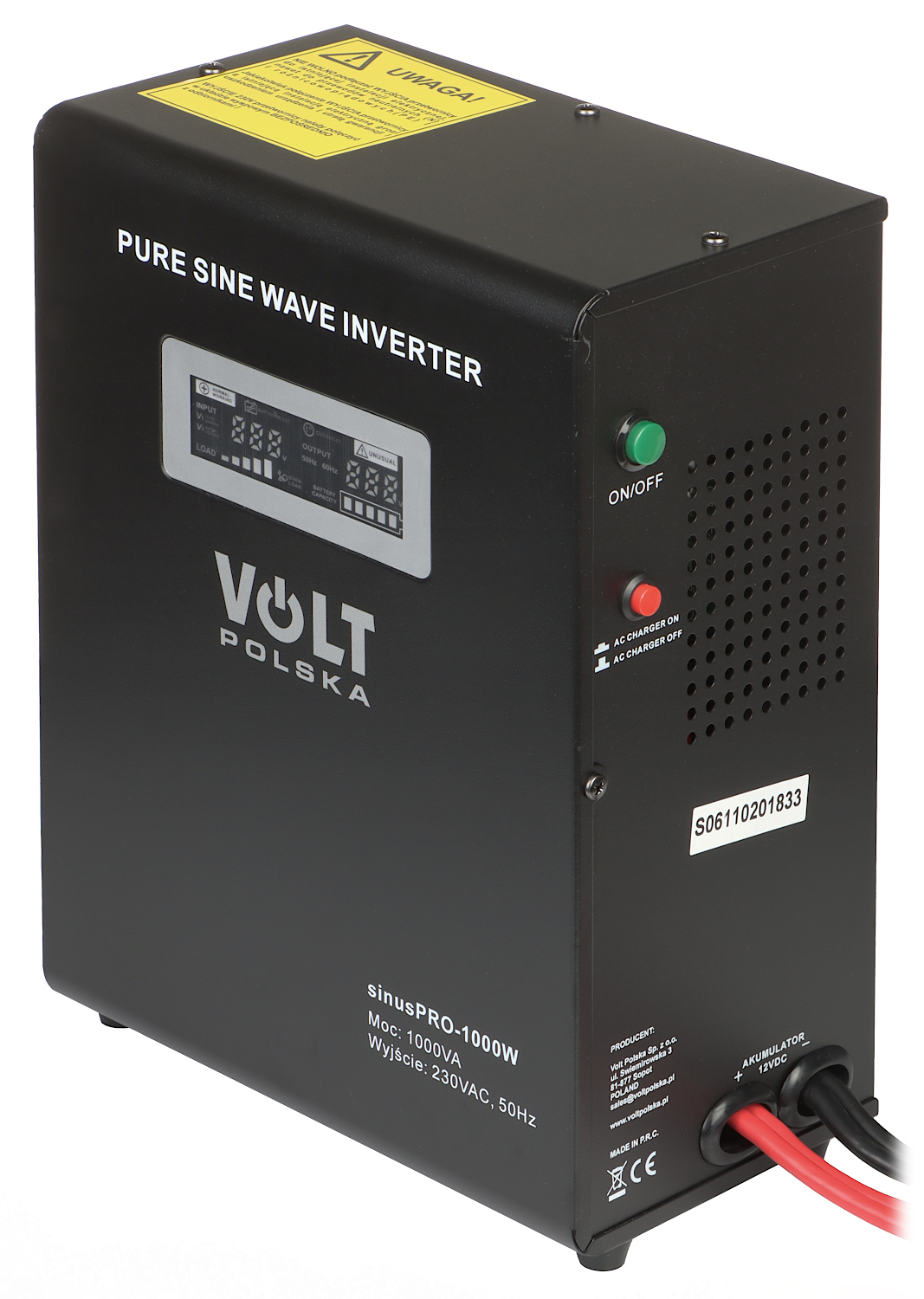 | Output voltage shape: | Pure Sine Wave - mains power mode, battery operation |
