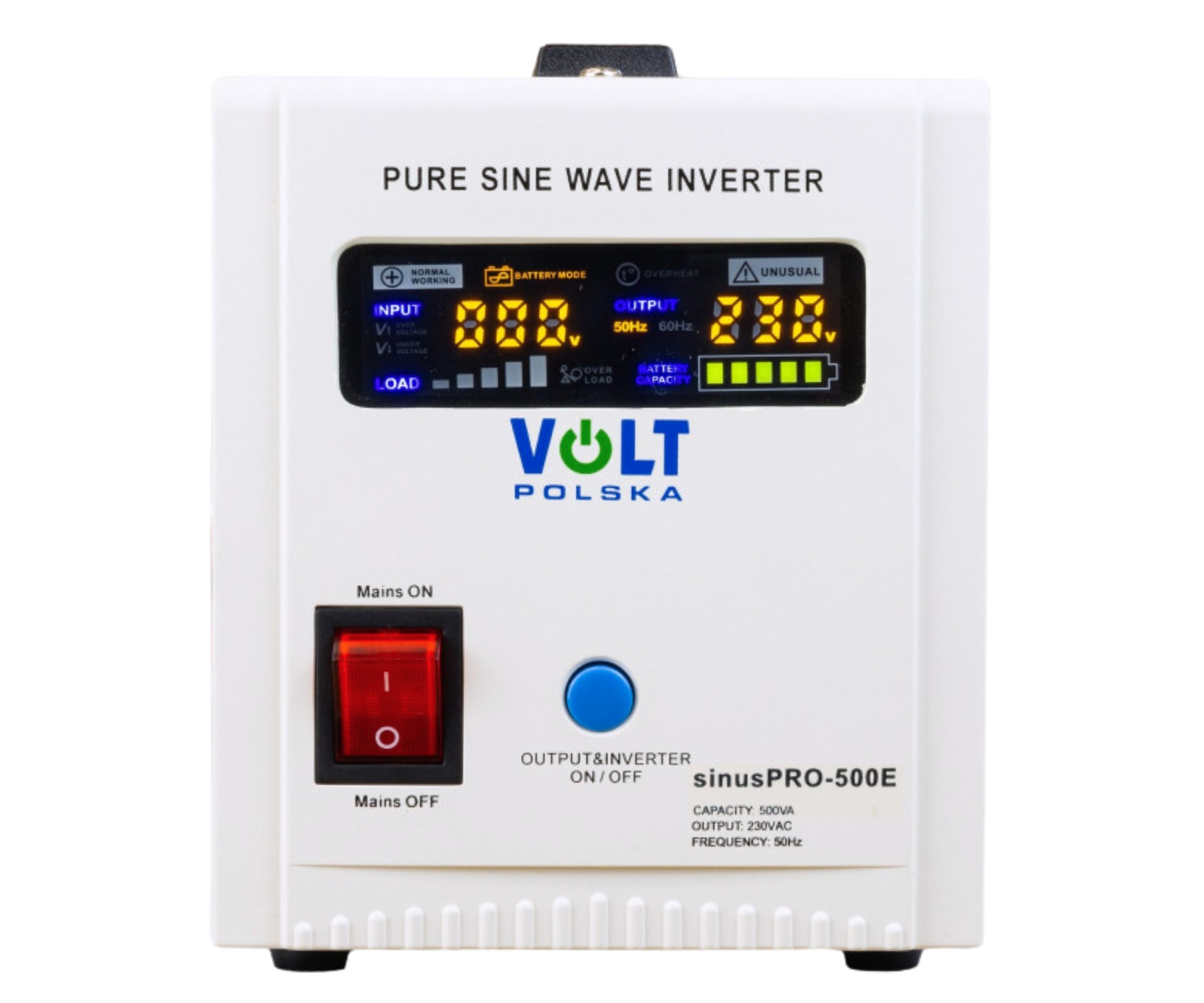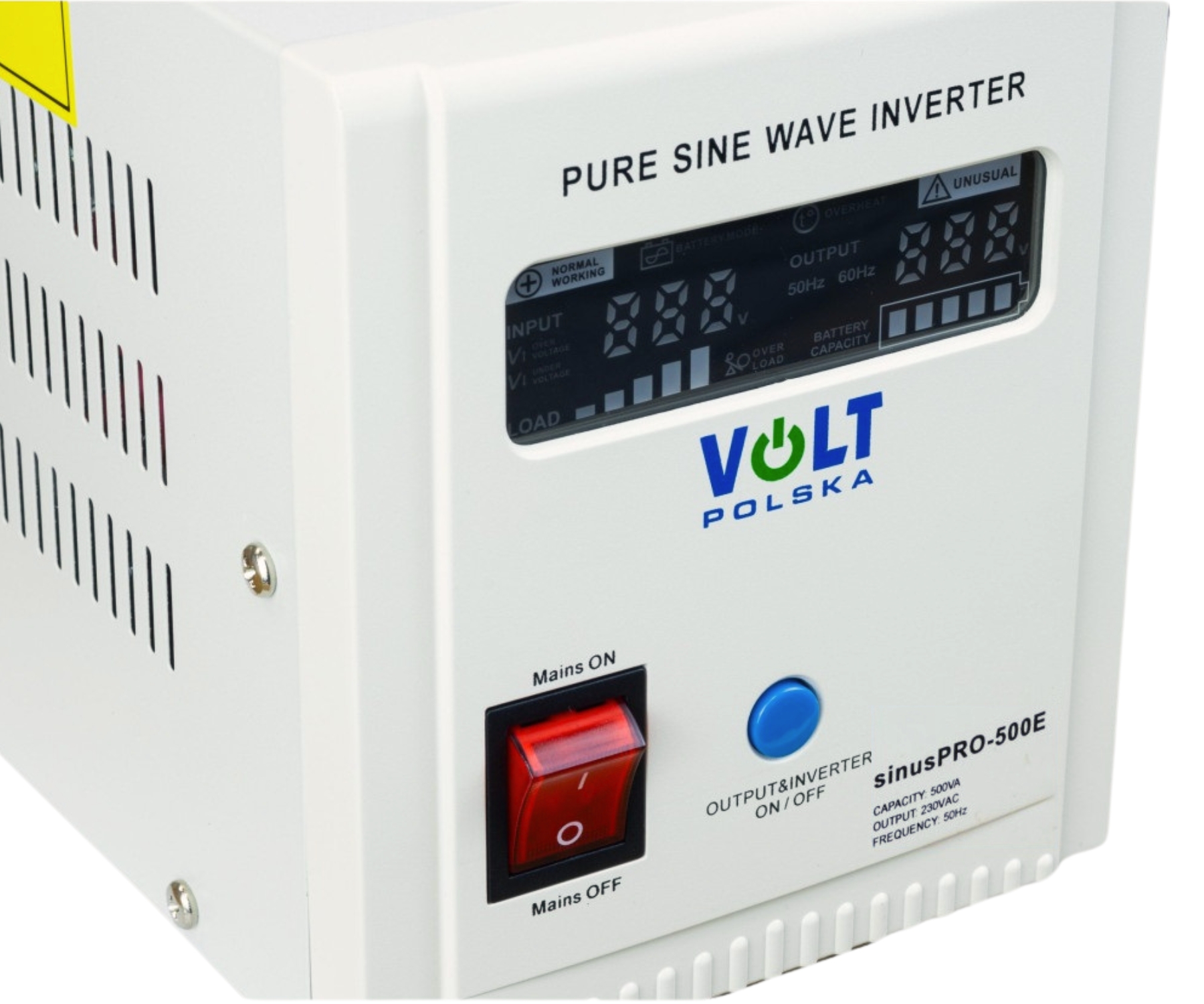 Output voltage shape: Pure Sine Wave ; Nominal power: 350 W ; Apparent Power: 500 VA ; Number of outputs: 2 pcs ; Operation state indication: LED display ;