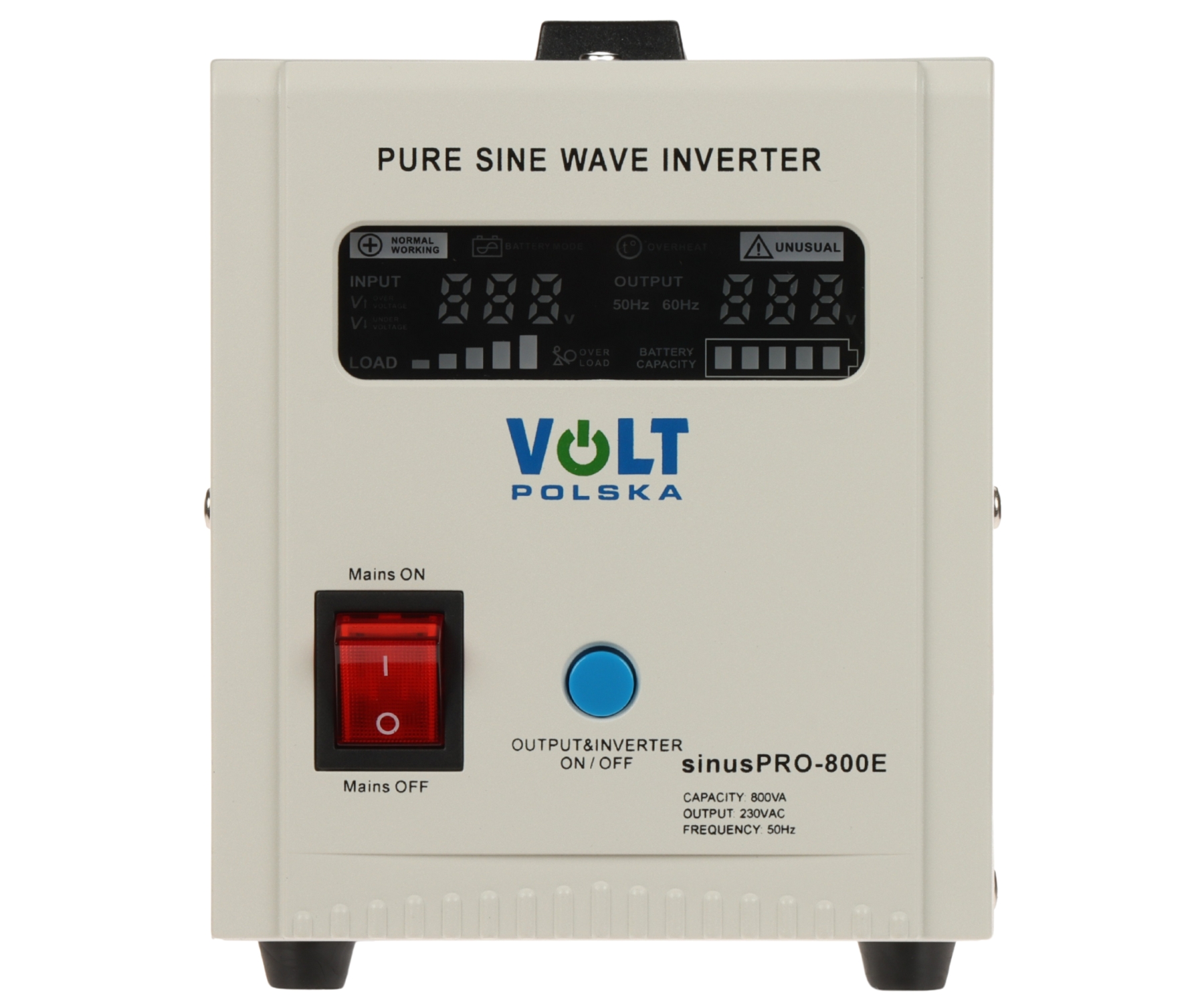 Output voltage shape: Pure Sine Wave ; Nominal power: 500 W ; Apparent Power: 800 VA ; Number of outputs: 2 pcs ; Operation state indication: LED display ;