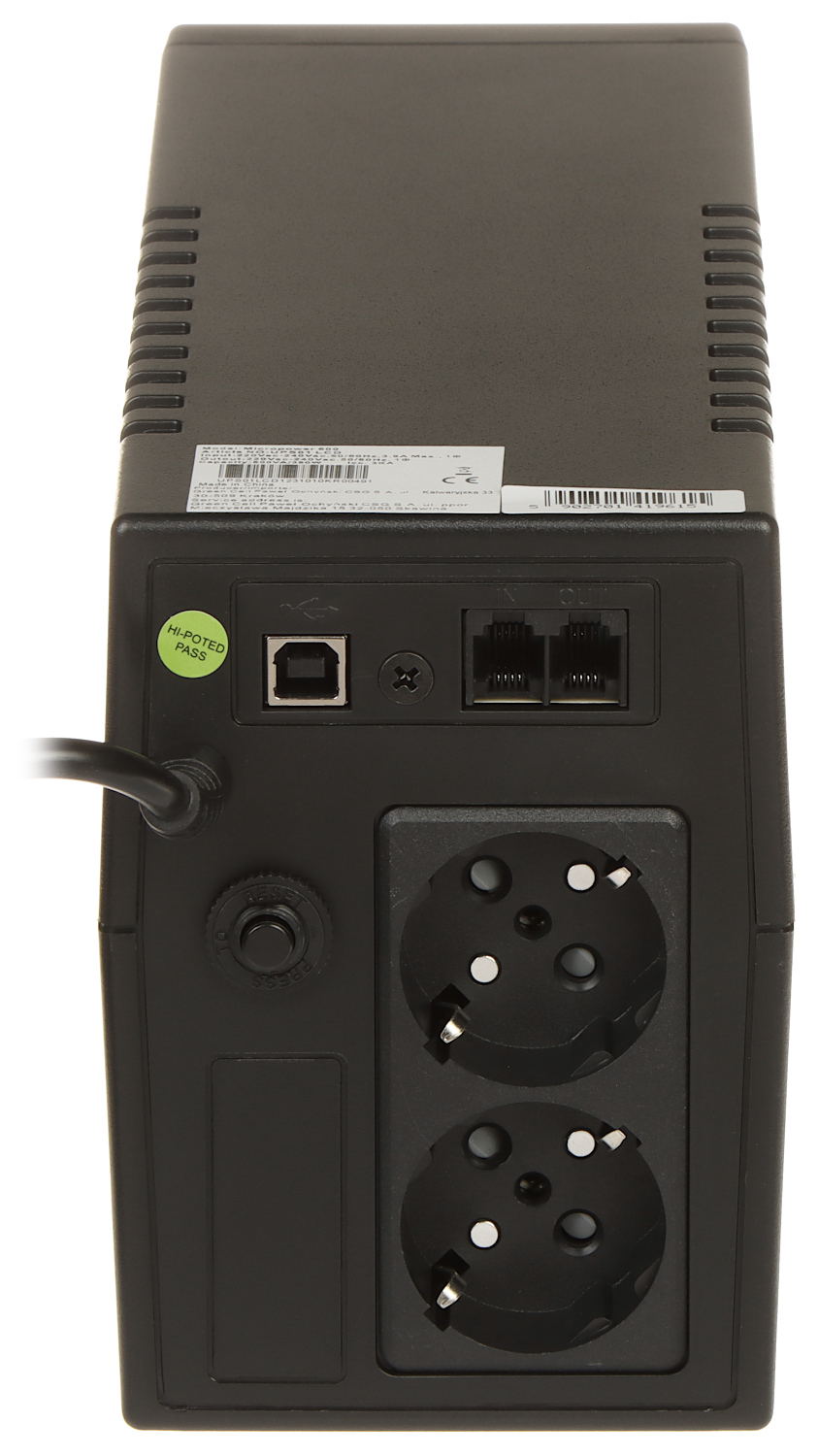 Nominal power: 360 W ; Apparent Power: 600 VA ; Battery: 1 pcs ; Estimated battery operation time: ≤ 20 minutes - depending on the load ; Number of outputs: 2 pcs ; Operation state indication: LCD display: operation mode, battery charging level, in/out voltage level, Work load, Overload signaling, Failure signaling, Low battery level alarm, Sound signaling ;
