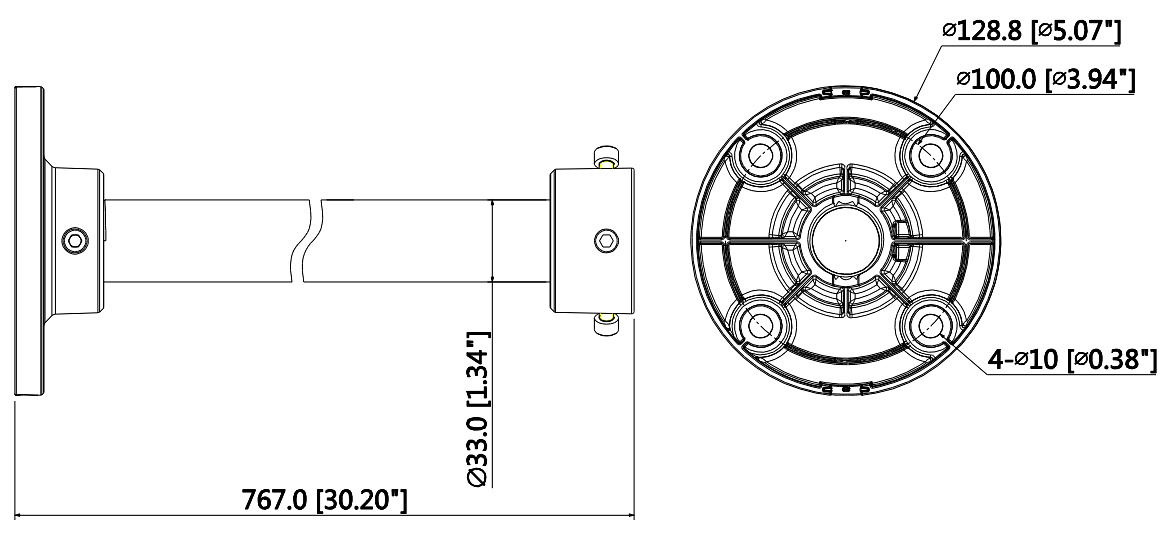 Neck diameter: Ø 47 mm ; Suitable for cameras: DAHUA ; Material: Aluminum ; Color: White ; Distance from mounting surface: 767 mm ;