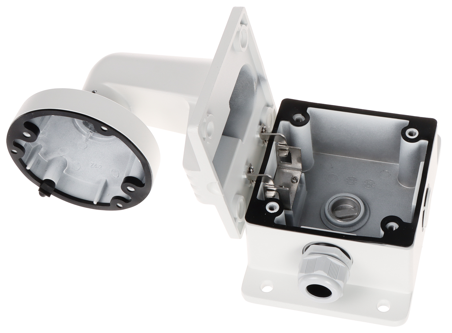 Mounting holes distance: 87 mm, 83.5 mm ; Number of holes: 2 or 3 ; Neck diameter: Ø 110 mm ; Suitable for cameras: Hikvision ; Material: Aluminum ; Color: White ; Distance from mounting surface: 118 mm ;