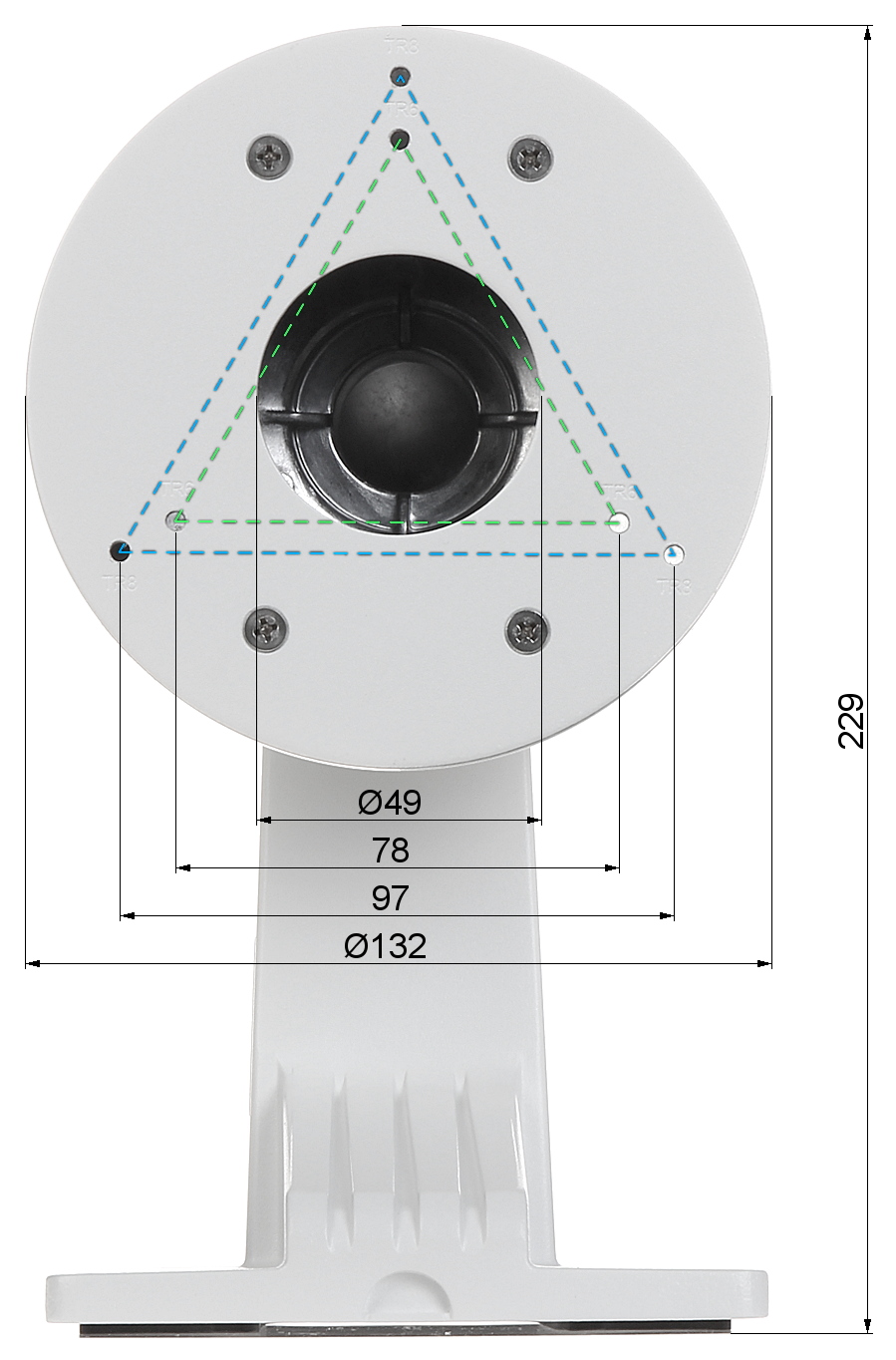 Neck diameter: Ø 132 mm ; Suitable for cameras: Hikvision ; Material: Aluminum ; Color: White ; Distance from mounting surface: 95 mm ;