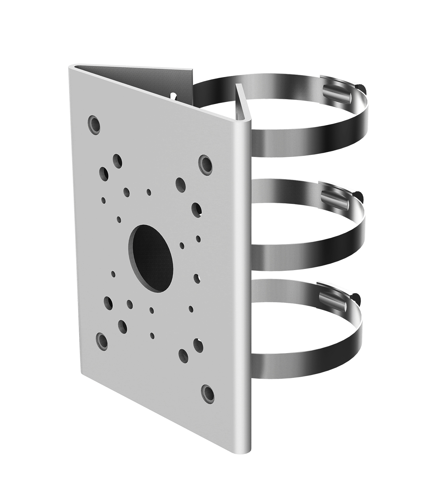 Mount designed to camera installation on a pole; Bearing capacity: 10 kg ; Pole diameters range: Ø 80 ... Ø 150 mm ; Material: Aluminum ; Color: Silver ;