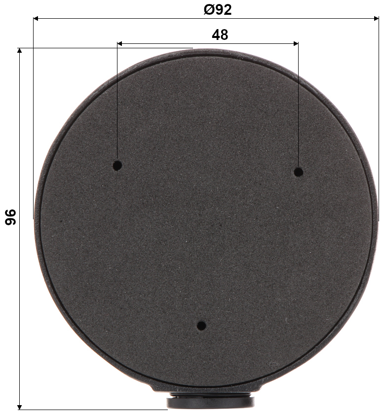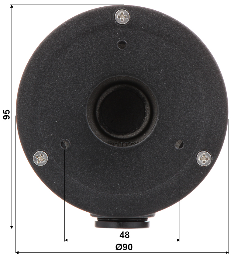 Mounting holes distance: 48 mm ; Number of holes: ; Neck diameter: Ø 90 mm ; Material: Aluminum ; Color: Black ; Distance from mounting surface: 35 mm ;