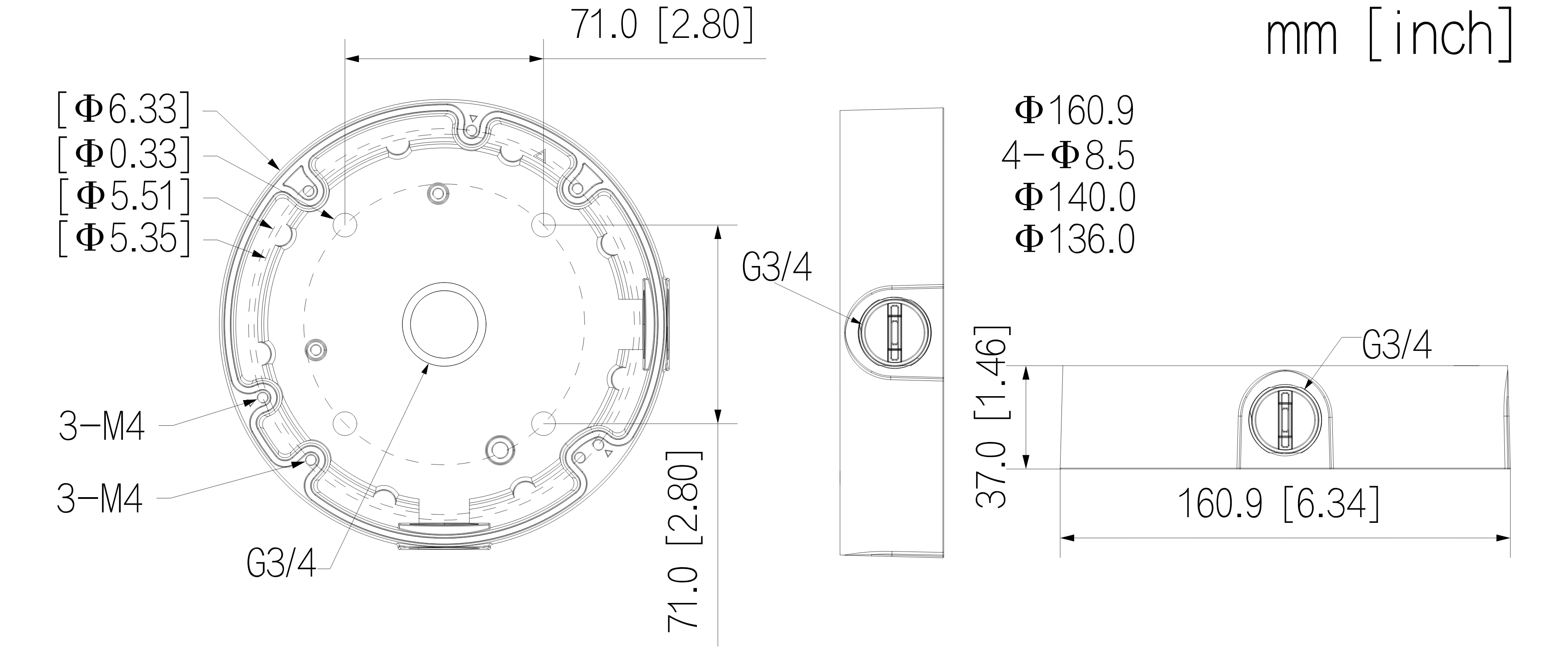 Bracket is perfect to hide connectors, cables and power adapter inside of it.; Neck diameter: Ø 161 mm ; Material: Aluminum ; Color: White ; Distance from mounting surface: 37 mm ;