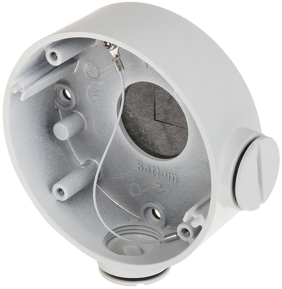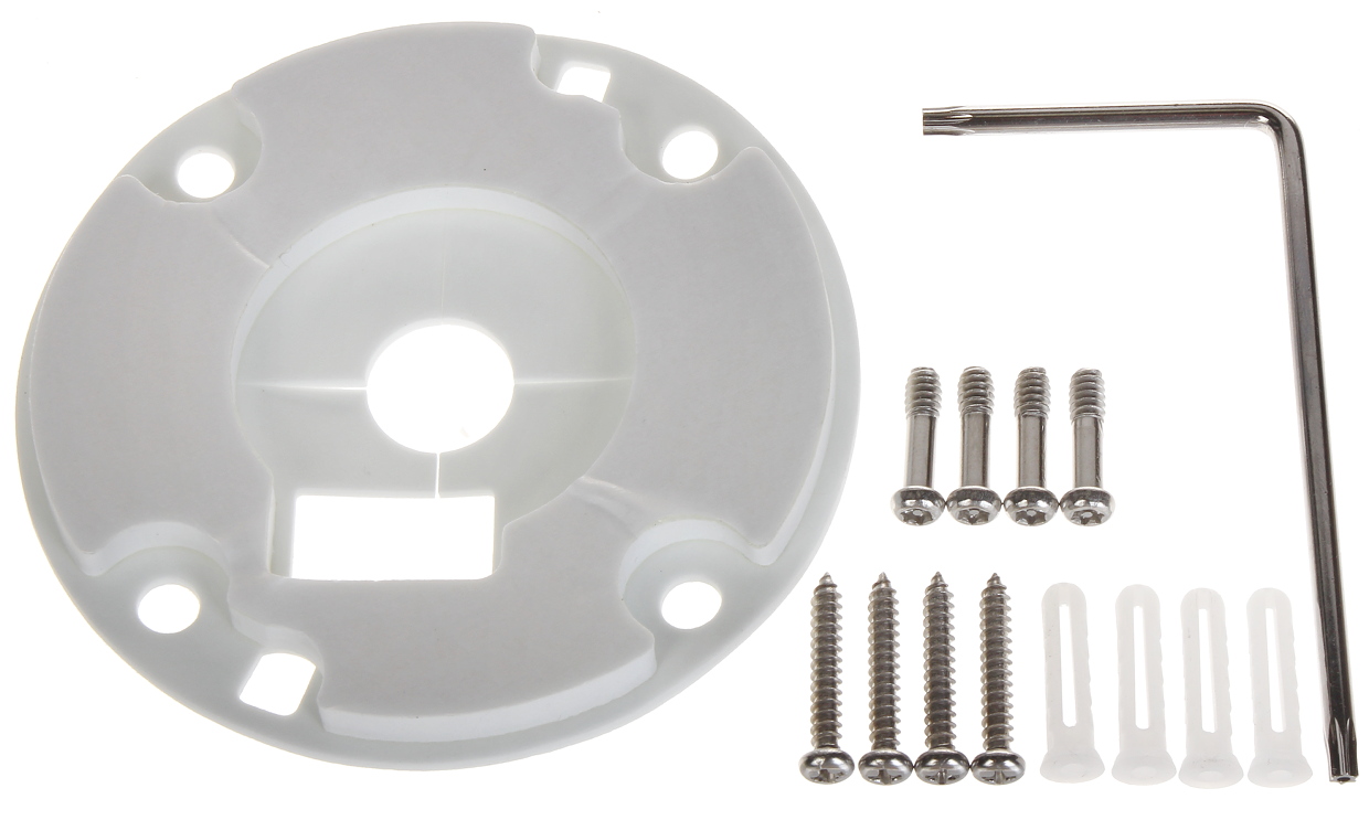 Bracket is perfect to hide connectors, cables and power adapter inside of it.; Mounting holes distance: 63 x 63 mm ; Number of holes: 4 ; Neck diameter: Ø 105 mm ; Material: Aluminum ; Color: White ; Distance from mounting surface: 37 mm ;
