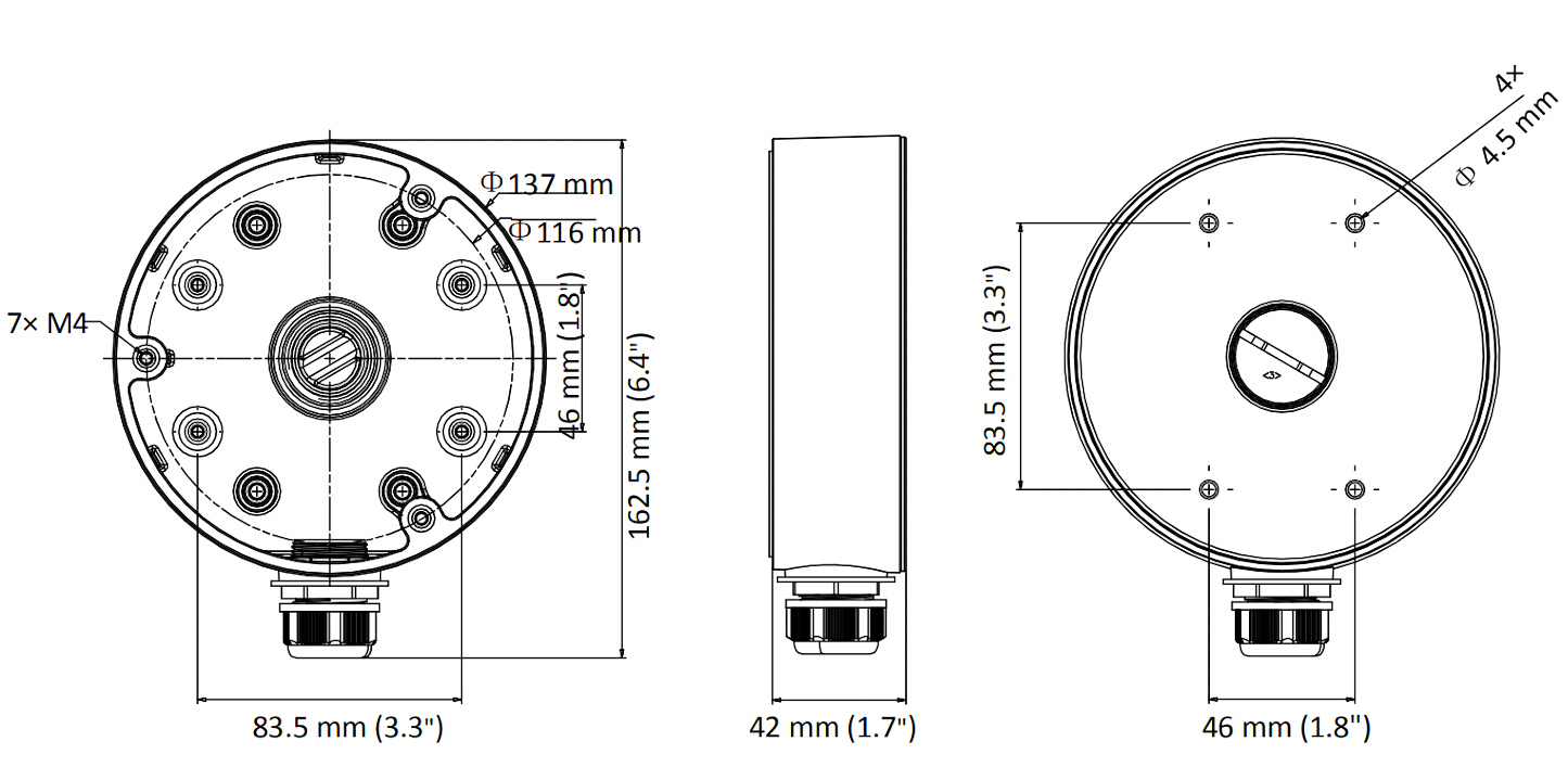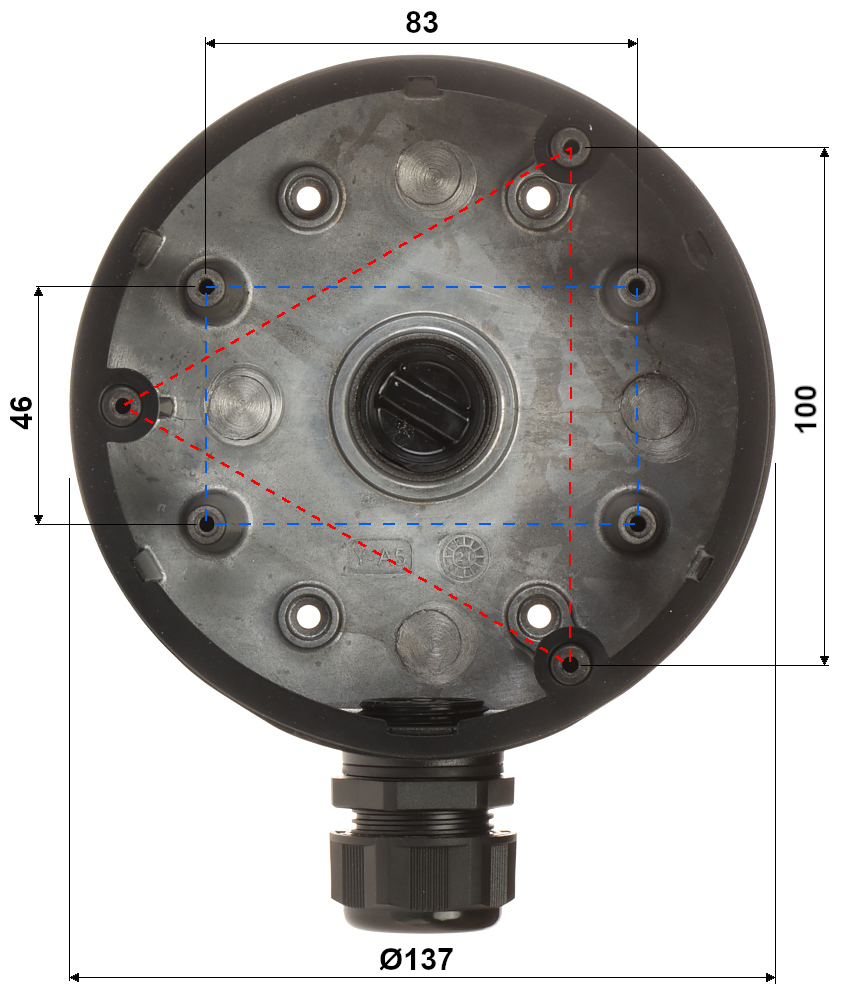 Neck diameter: Ø 137 mm ; Material: Aluminum alloy ; Color: Black ; Distance from mounting surface: 42 mm ;