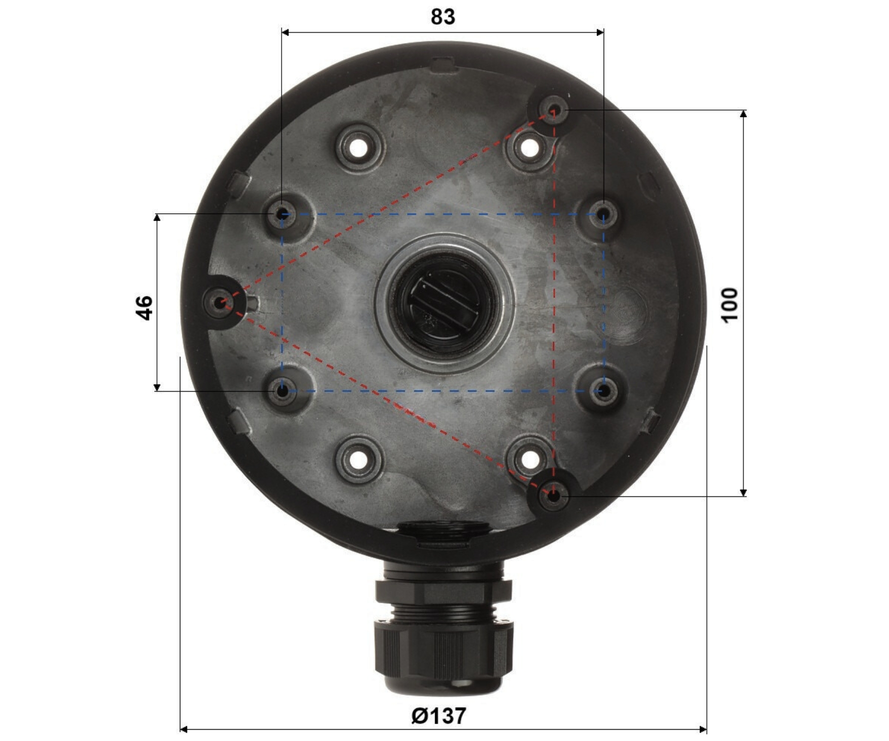 Neck diameter: Ø 137 mm ; Material: Aluminum alloy ; Color: Black ; Distance from mounting surface: 43 mm ;
