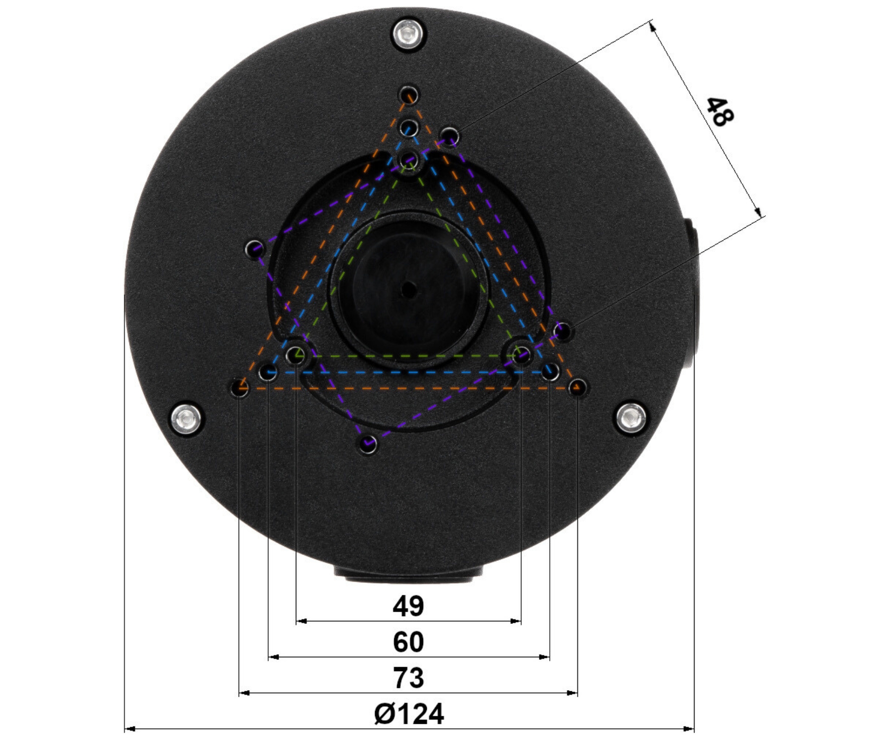 Bracket is perfect to hide connectors, cables and power adapter inside of it.; The product meets the IP66 tightness class; Neck diameter: Ø 124 mm ; Material: Aluminum ; Color: Black ; Distance from mounting surface: 41 mm ;