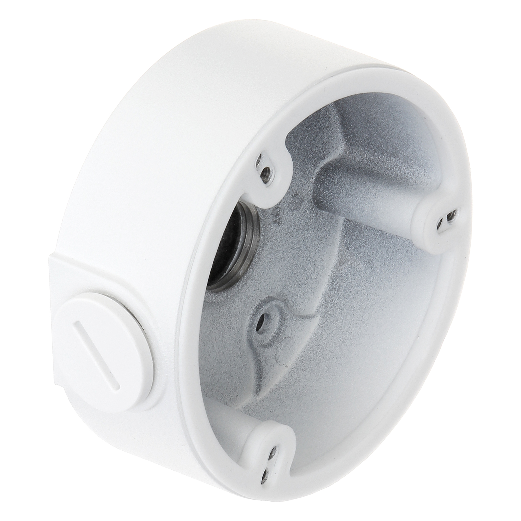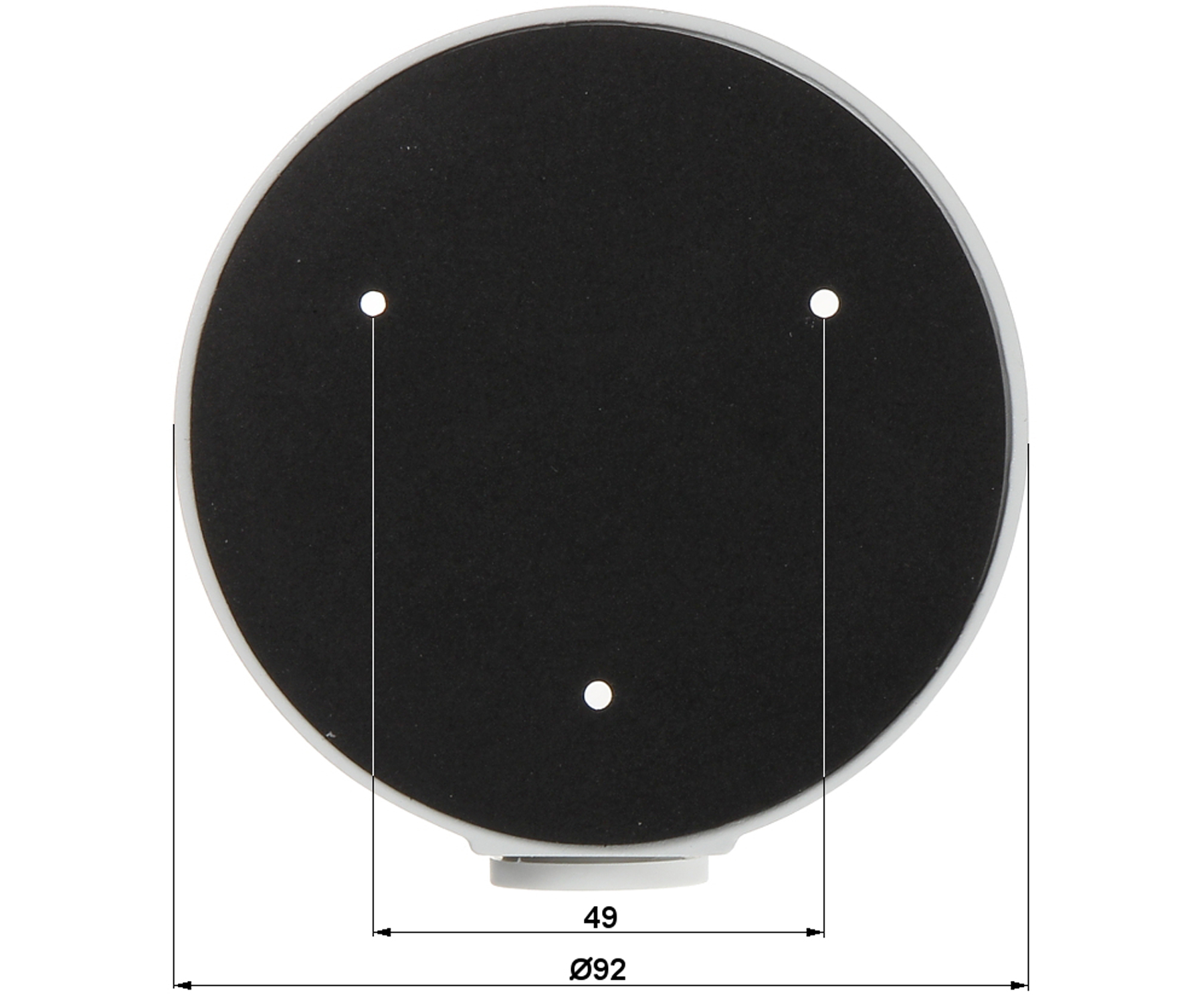 Mounting holes distance: 61 mm, 69 mm ; Number of holes: 2 x 3 ; Neck diameter: Ø 92 mm ; Material: Aluminum ; Color: White ; Distance from mounting surface: 34 mm ;
