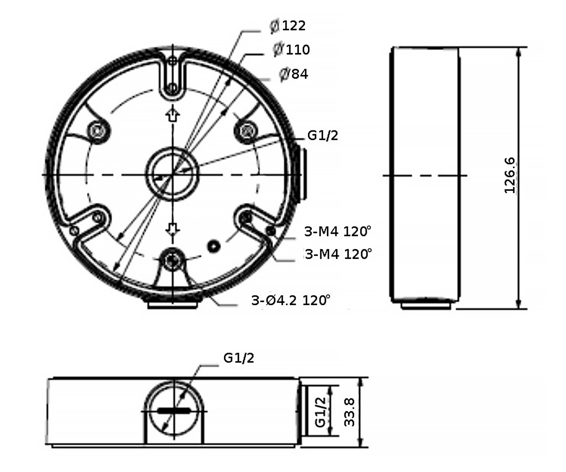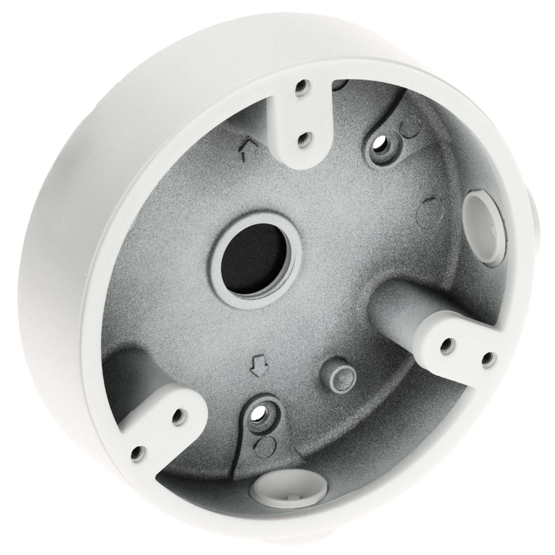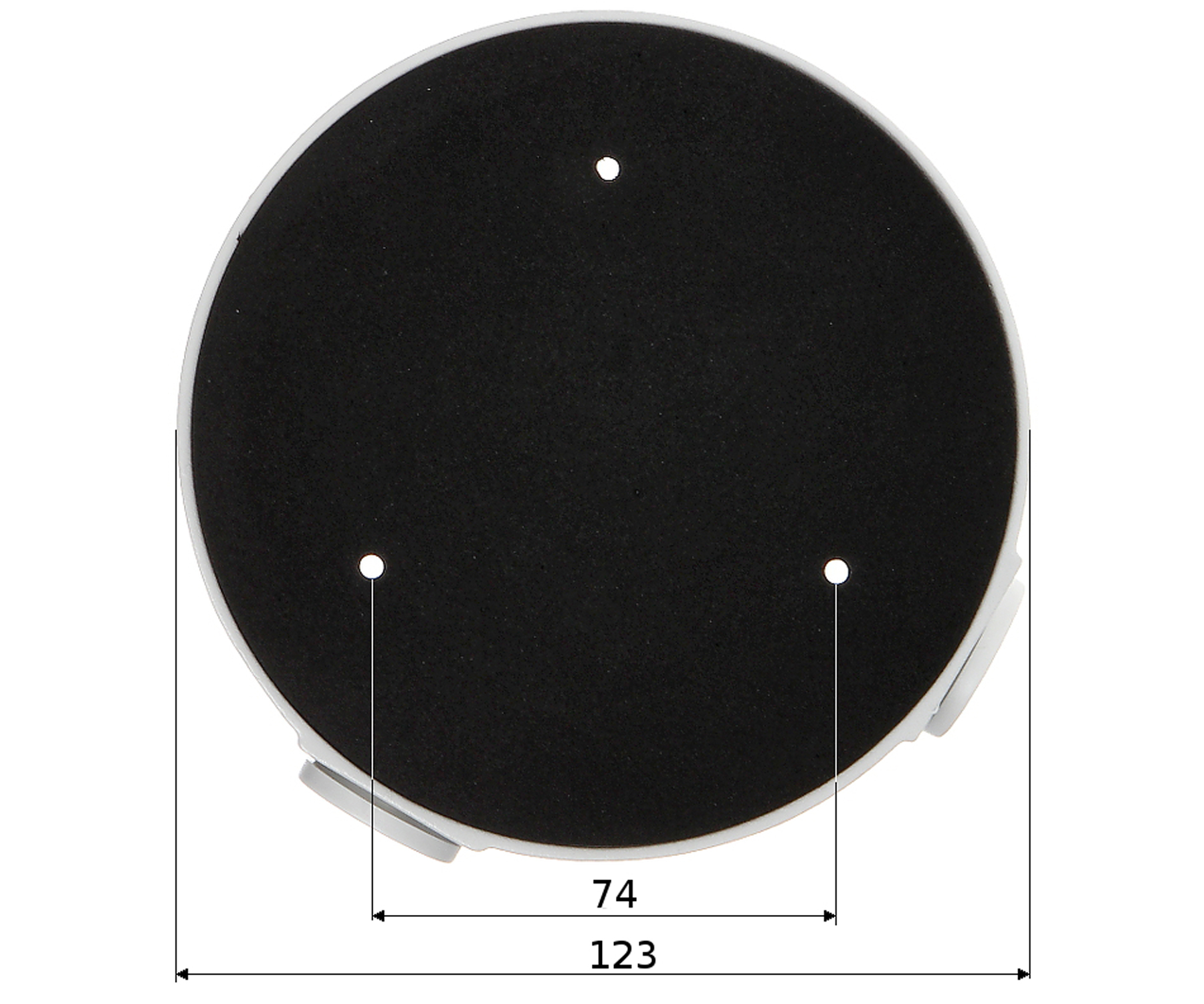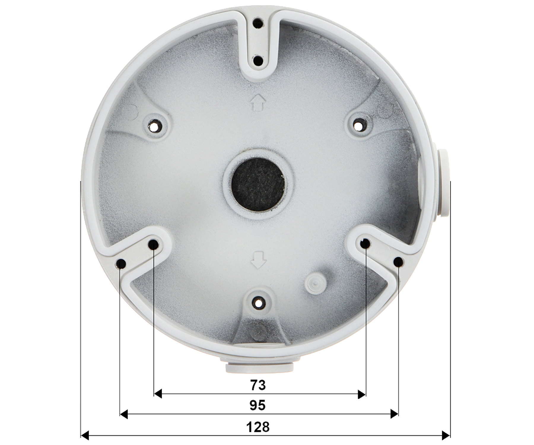 Mounting holes distance: 73 mm, 95 mm ; Number of holes: 2 x 3 ; Neck diameter: Ø 122 mm ; Material: Aluminum ; Color: White ; Distance from mounting surface: 33.8 mm ;