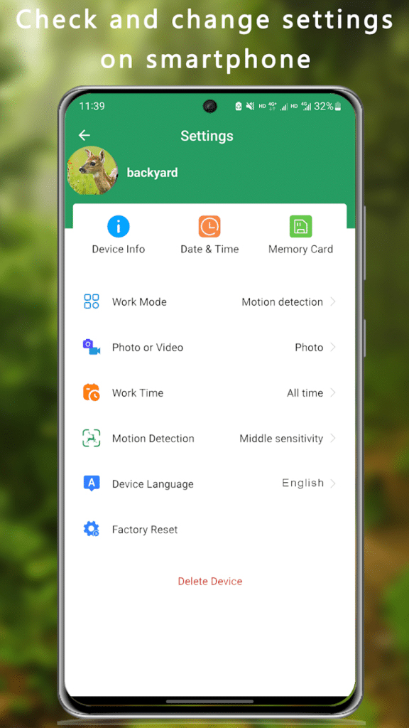 • The device supports the TrailCam Go cloud, available via the mobile application