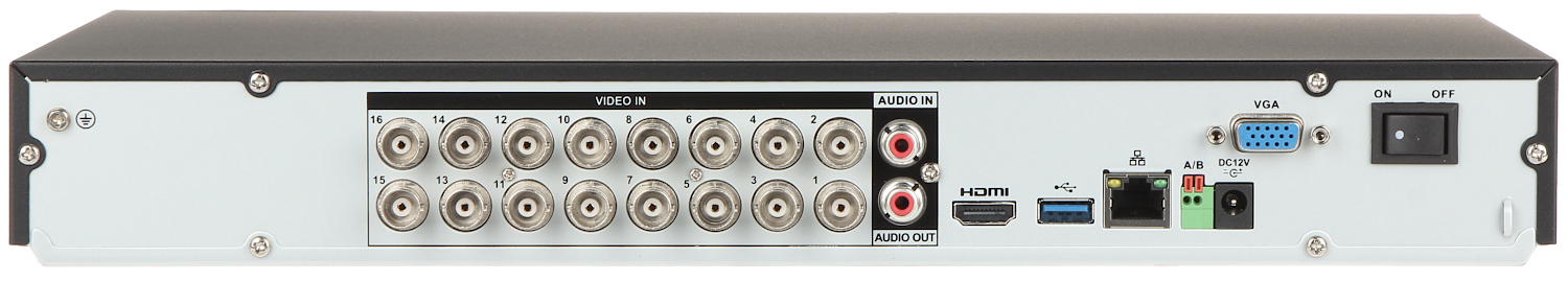 Audio inputs: 1 pcs CINCH 16 Channels - Audio support via coaxial cable ; Image compression method: AI Coding / H.265+ ; Image records resolutions: AHD / HD-CVI / HD-TVI : 5M-N - 1296 x 1944, IP : max. 6 Mpx ; Supported hard drives: 2 x 16 TB SATA ; Main features: Cooperation with Dahua devices working in the concept of the Internet of Things (IoT), Coax Audio/Alarm support, Intelligent Image Analysis advanced face and vehicle recognition and search functions ;