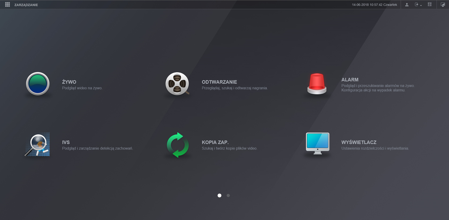 | Searching and playback the records: | Records searching: by time + timeline with record type. Playback: forward, fast, slow, step Advanced searching (to the one second accuracy) Intelligent face search AI - simultaneous search in the archive of face recordings based on max 8 photos taking into account the similarity threshold (for each photo separately) 1/4/9 channel synchronous playback |