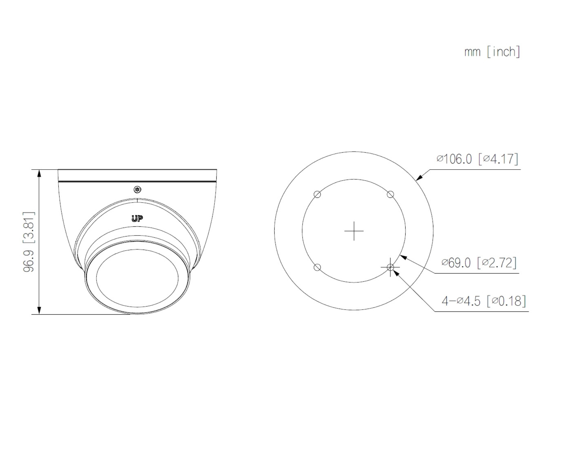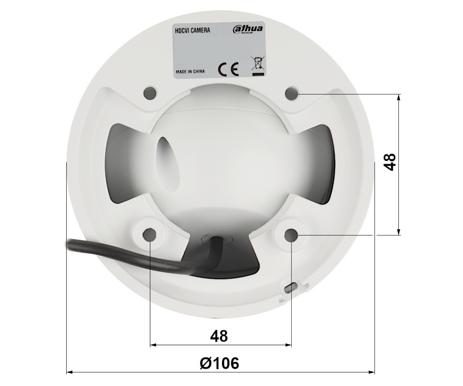 Sensor: Progressive Scan CMOS ; Matrix size: 2 Mpx ; Resolution: 1920 x 1080, ; View angle: 101 ° ; White light LED illuminator range: 40 m ; Audio: Microphone built-in, Audio support via coaxial cable - HD-CVI only ; Power supply: 12 V DC ;
