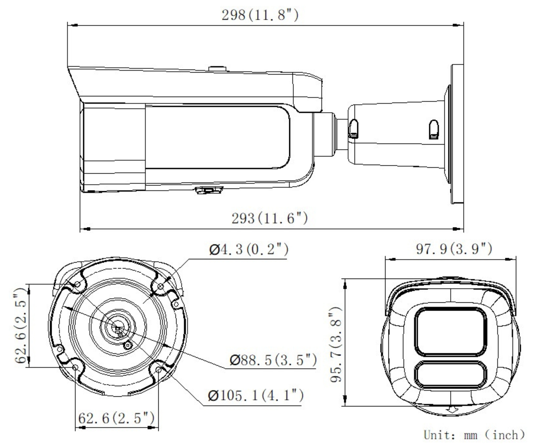 Resolution: 3200 x 1800, 2688 x 1520, 1920 x 1080 ; Sensor: 1/2.4 " ; View angle: 102 ° ... 35 ° ; White light LED illuminator range: 60 m ; Range of IR illumination: 60 m ; Memory card slot: Micro SD memory cards up to 512GB support (possible local recording) ; Audio: Microphone built-in, Compliance with the AAC standard ; Power supply: PoE (802.3at), 12 V DC ;