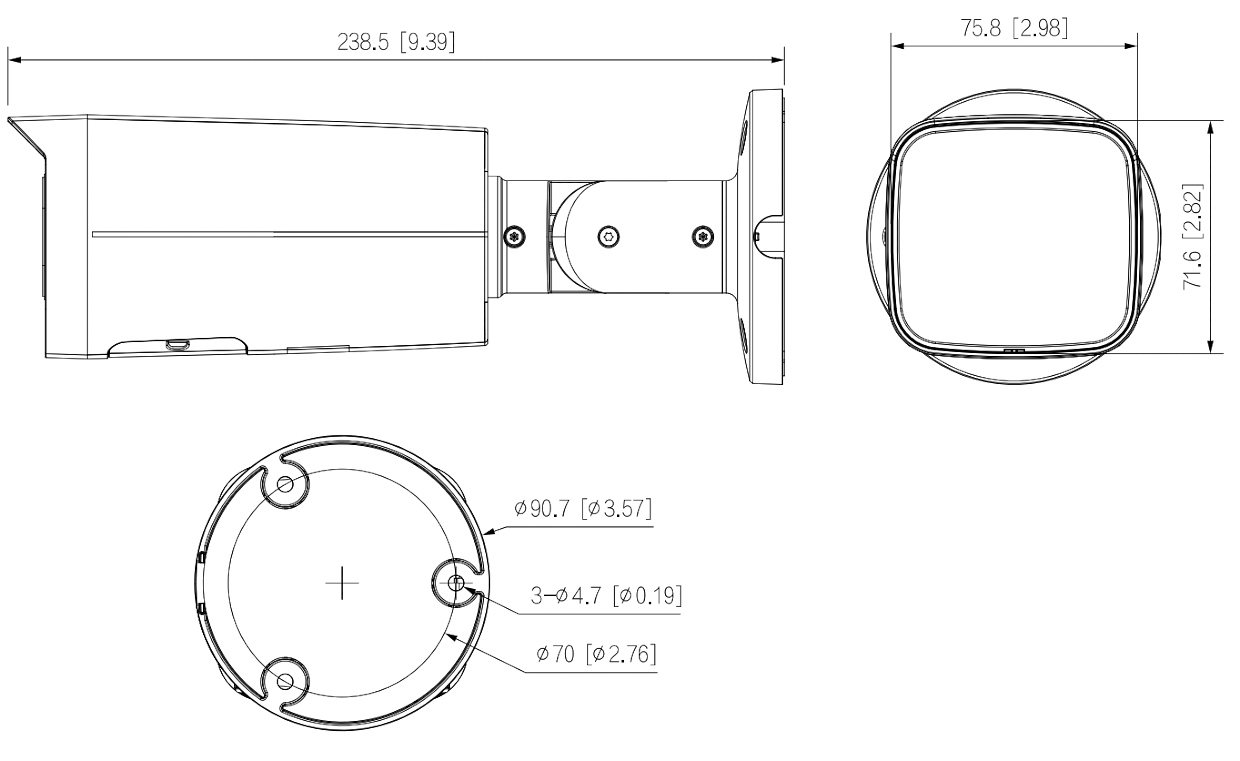 Sensor: 1/2.7 " Progressive Scan CMOS ; Matrix size: 8.3 Mpx 4K UHD ; Resolution: 3840 x 2160, 3072 x 2048, 3072 x 1728, 2880 x 1620, 2688 x 1520, 2048 x 1536, 2304 x 1296, 1920 x 1080 ; Lens: - Motozoom ; View angle: 113 ° ... 31 ° ; Compression: H.265+ ; Range of IR illumination: 60 m ; Alarm inputs / outputs: 1 / 1 ; Audio: Microphone built-in, Bi-directional audio streaming support ; Memory card slot: Micro SD memory cards up to 256GB support (possible local recording) ; Power supply: PoE (802.3af), 12 V DC ;