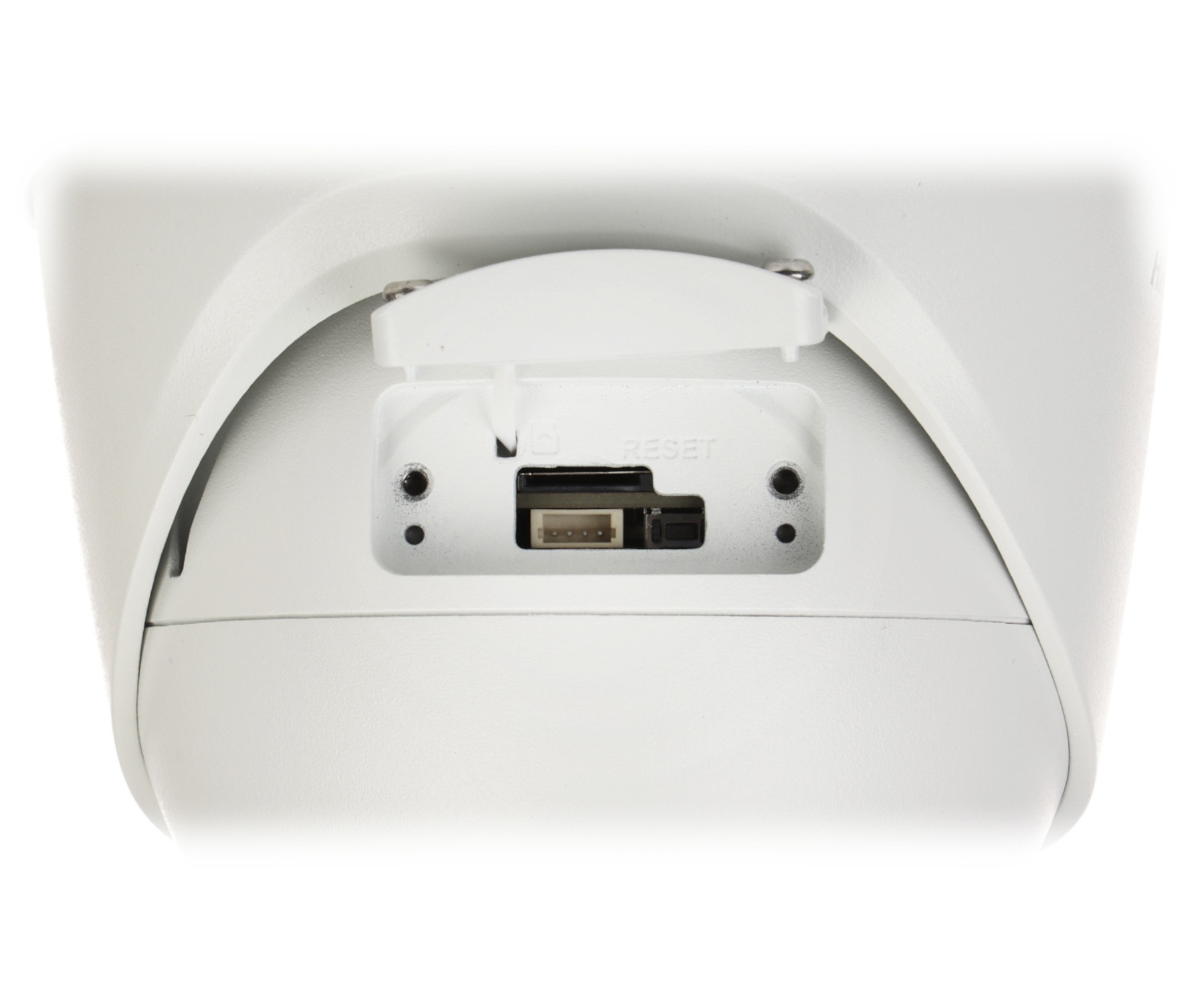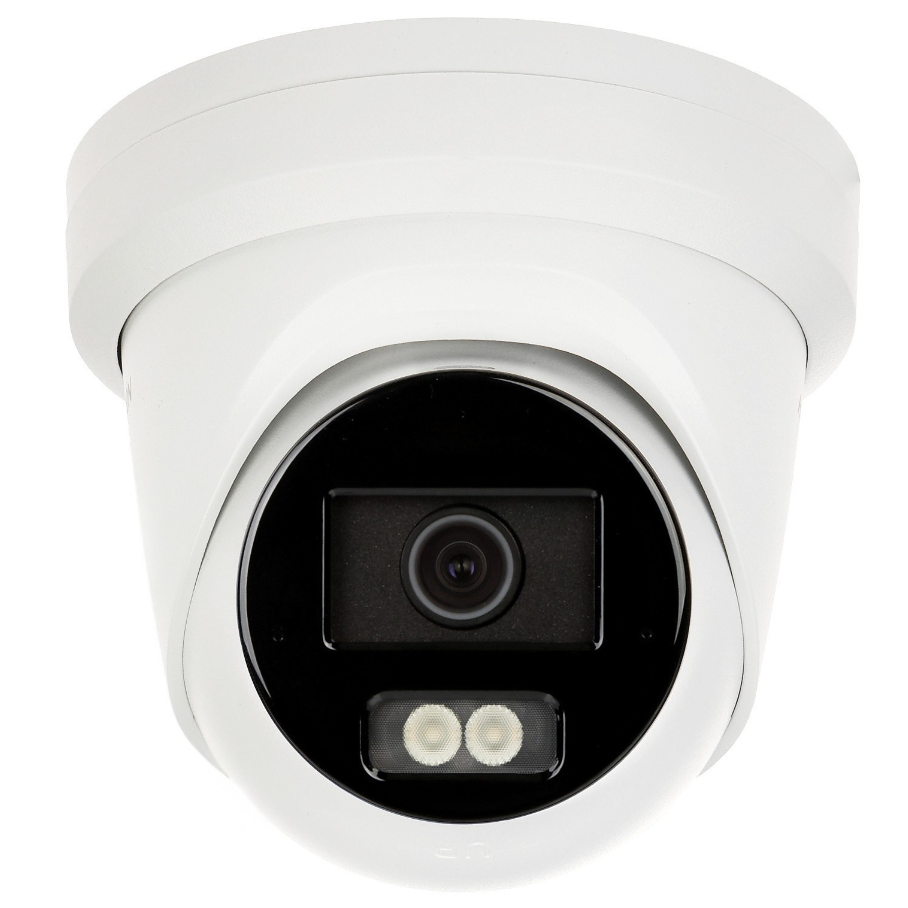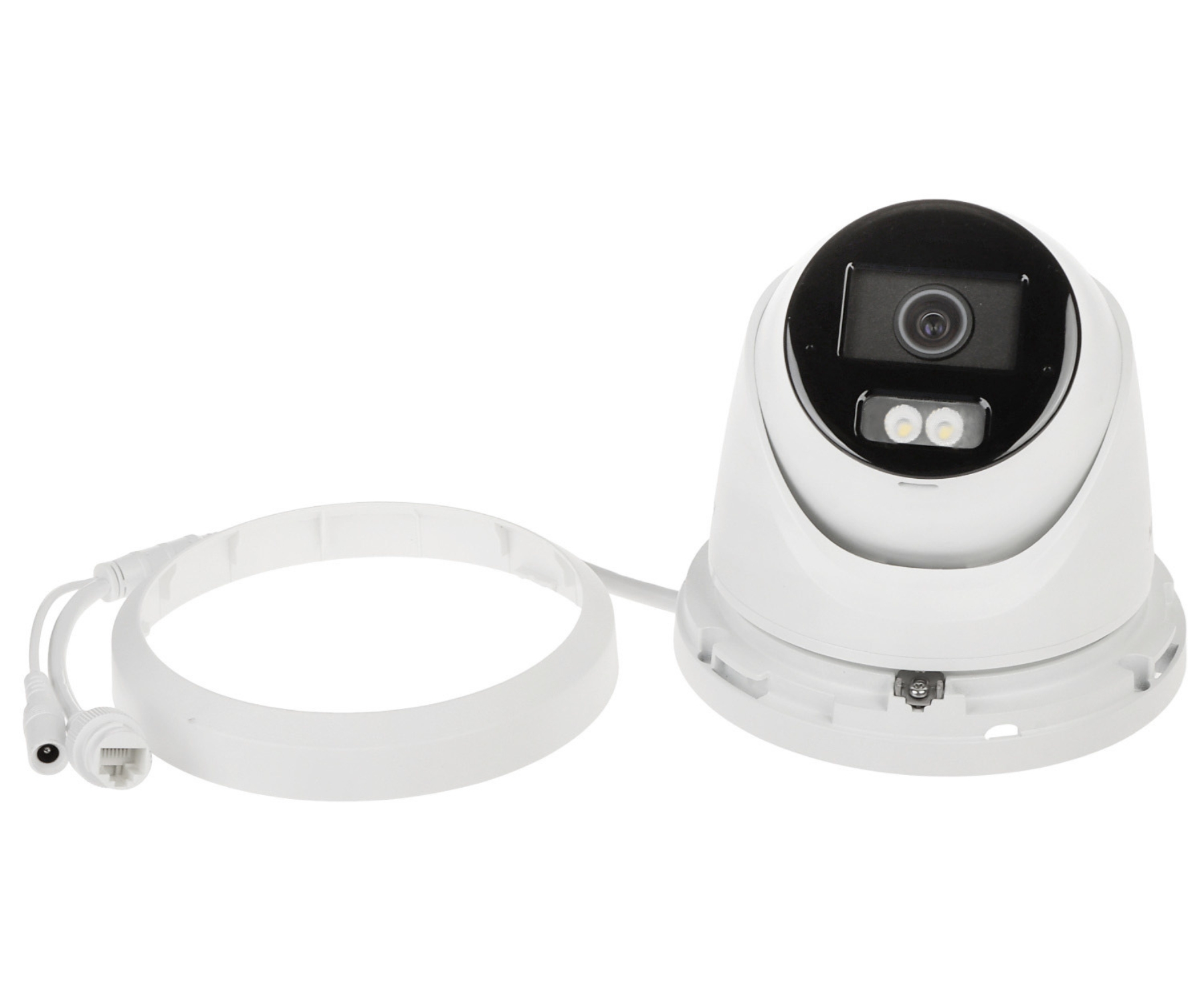 Resolution: 3840 x 2160, 3200 x 1800, 2688 x 1520, 1920 x 1080 ; Sensor: 1/2.8 " ; View angle: 108 ° ; White light LED illuminator range: 30 m ; Range of IR illumination: 30 m ; Memory card slot: Micro SD card support up to 512GB ; Image compression method: H.265+ ; Audio: Microphone built-in, Audio input, Audio output, Compliance with the AAC standard ; Power supply: PoE (802.3af), 12 V DC ;