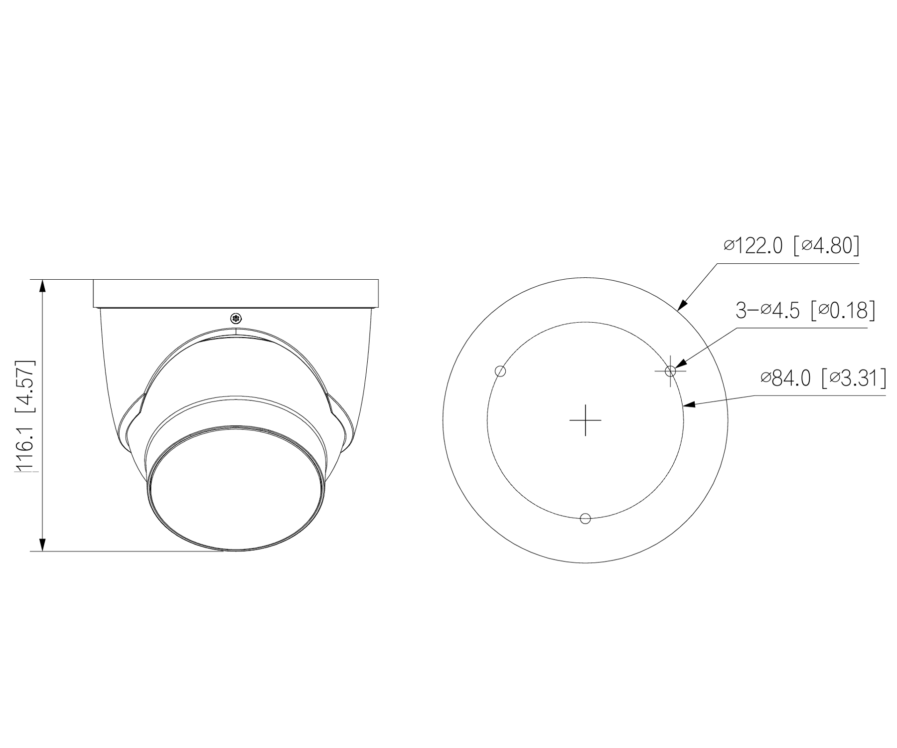Resolution: 3840 x 2160, 3200 x 1800, 3072 x 1728, 2688 x 1520, 2560 x 1440, 2304 x 1296, 1920 x 1080 ; Sensor: 1/1.8 " ; View angle: 109 ° ; Range of IR illumination: ≤ 30 m ; White light LED illuminator range: ≤ 30 m ; Image compression method: H.265+ ; Memory card slot: Micro SD card support up to 512GB ; Alarm inputs / outputs: 1 / 1 ; Audio: Microphone built-in : 2 pcs, Bi-directional audio streaming support ; Main features: Light and sound alarm ; Power supply: PoE (802.3af), 12 V DC ;