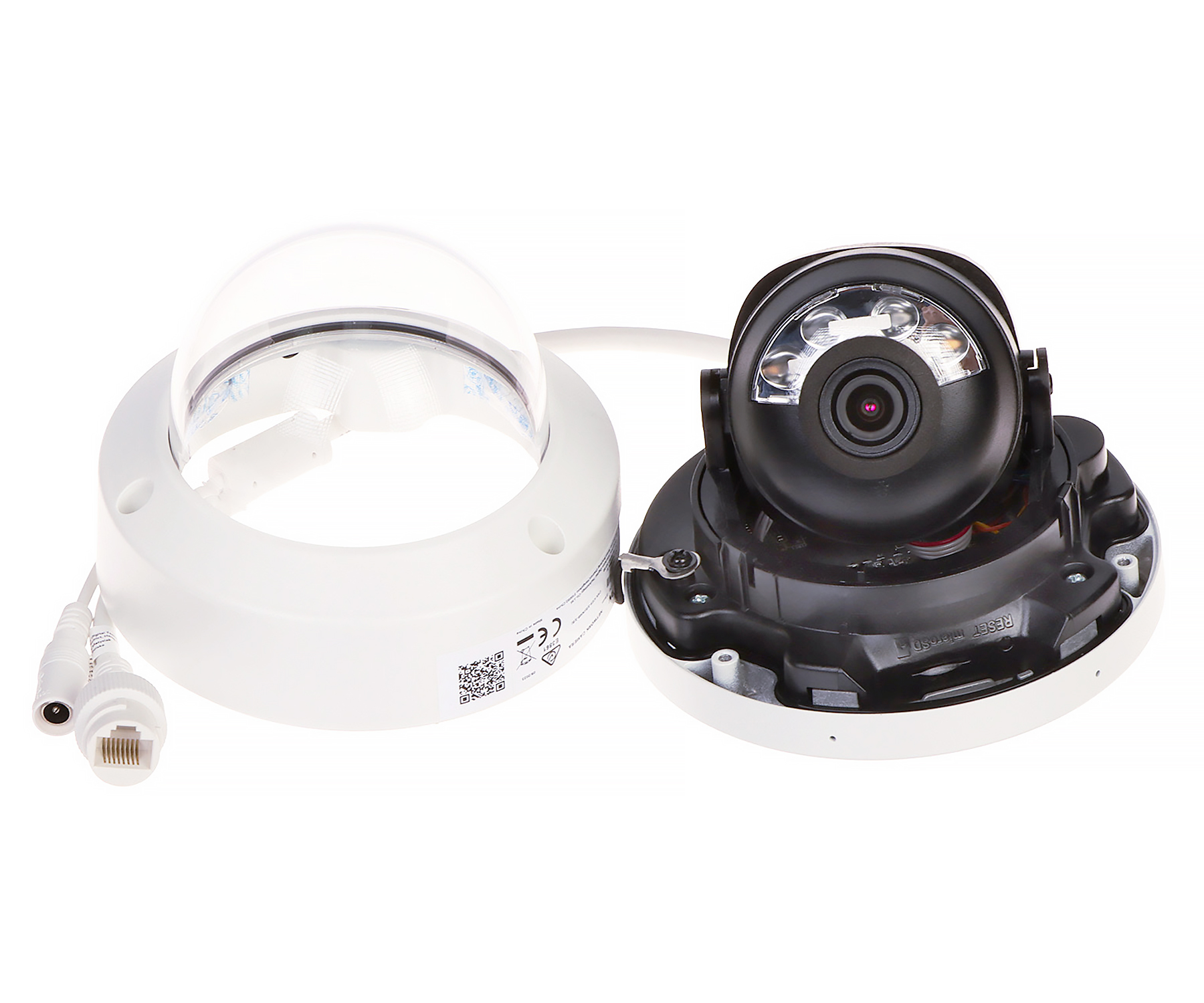 Resolution: 3200 × 1800, 2688 × 1520, 1920 x 1080, 1280 x 720 ; Sensor: 1/2.4 " ; View angle: 105 ° ; White light LED illuminator range: 30 m ; Range of IR illumination: 30 m ; Image compression method: H.265+ ; Audio: Microphone built-in ; Power supply: PoE (802.3af), 12 V DC ; Mechanical protection class: IK08 ;