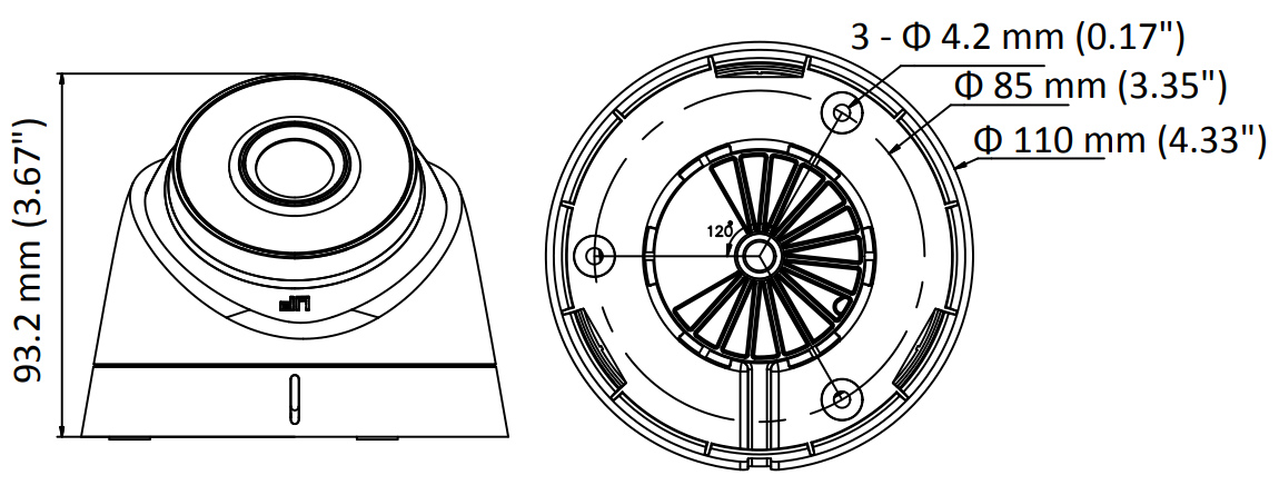 Sensor: 1/2.7 " Progressive Scan CMOS ; Matrix size: 2.1 Mpx ; Resolution: 1920 x 1080 - 1080p ; View angle: 105 ° ; Range of IR illumination: 30 m ; Power supply: PoE (802.3af), 12 V DC ; "Index of Protection": IP67 ;