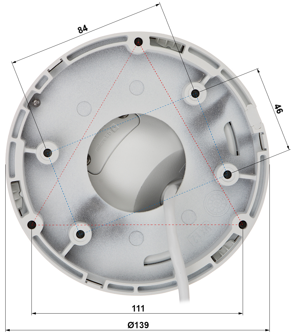Sensor: 1/1.8 " ; Matrix size: 8.3 Mpx ; Resolution: 3840 x 2160, 3200 x 1800, 2688 x 1520, 1920 x 1080 ; View angle: 111 ° ; Range of IR illumination: 30 m ; Memory card slot: Micro SD memory cards up to 512GB support (possible local recording) ; Image compression method: H.265+ ; Audio: Microphone built-in ; Power supply: PoE (802.3af), 12 V DC ;