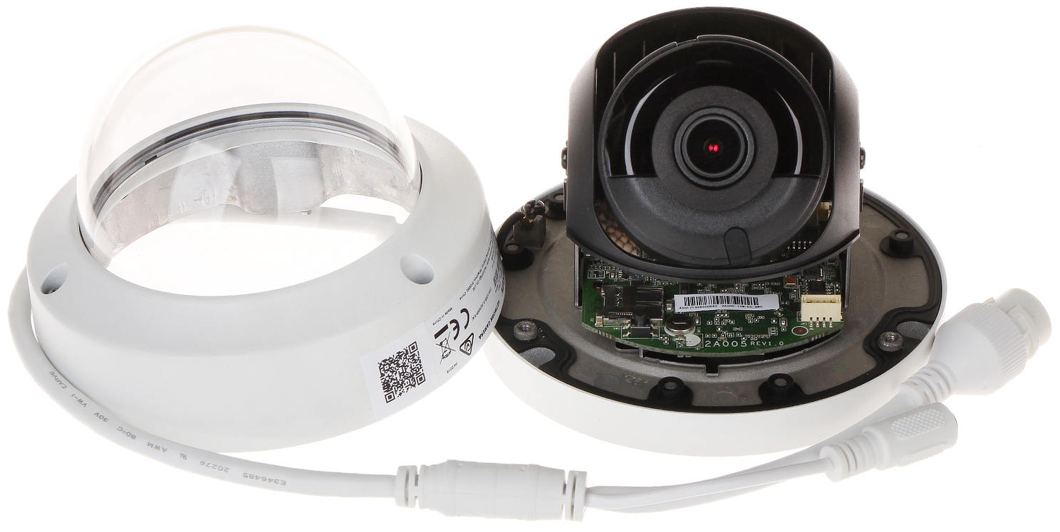 Sensor: 1/2.8 " ; Matrix size: 8.3 Mpx ; Resolution: 3840 x 2160, 3200 x 1800, 2688 x 1520, 1920 x 1080 ; View angle: 107 ° ; Range of IR illumination: 30 m ; Image compression method: H.265+ ; Memory card slot: Micro SD memory cards up to 512GB support (possible local recording) ; Power supply: PoE (802.3af), 12 V DC ; Vandal-proof: IK10 ; "Index of Protection": IP67 ;