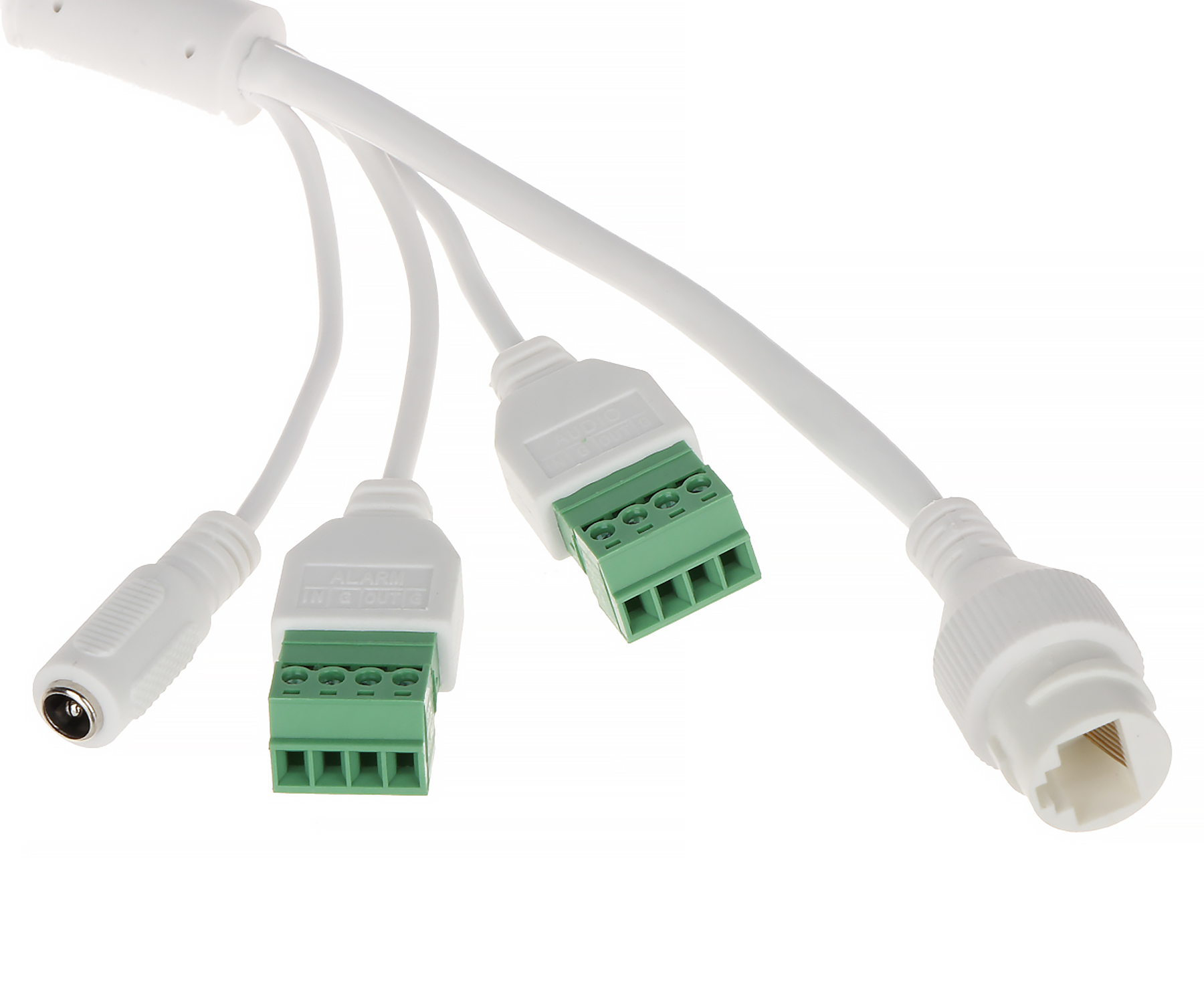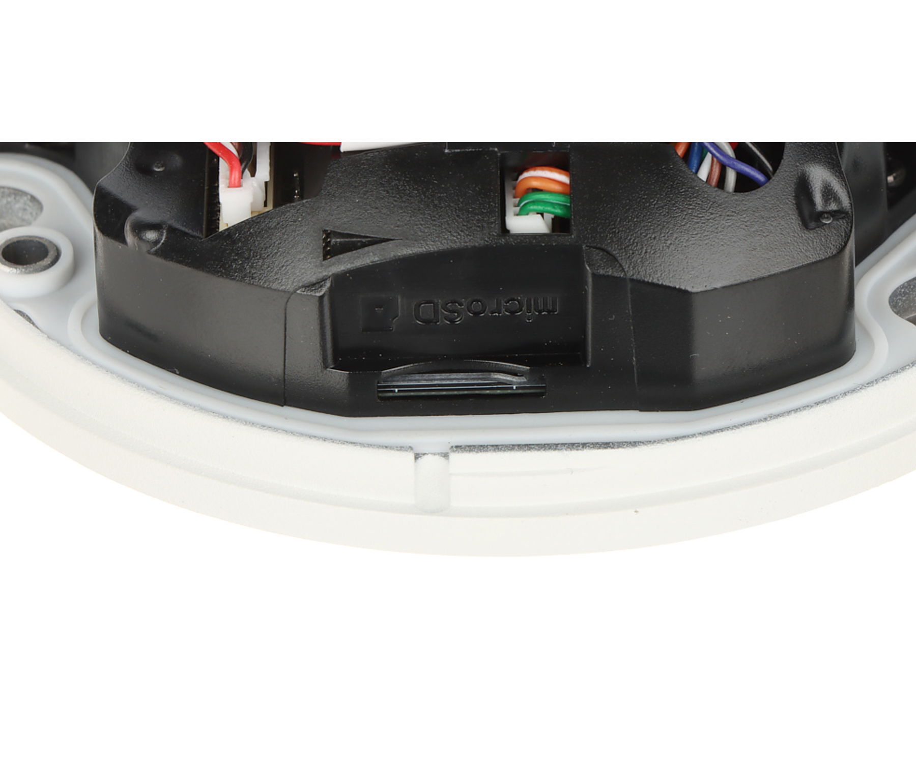Resolution: 1920 x 1080 ; Sensor: 1/2.8 " ; View angle: 108 ° ; Range of IR illumination: 30 m ; Image compression method: H.265+ ; Alarm inputs / outputs: 1 / 1 ; Audio: Bi-directional audio streaming support ; Memory card slot: Micro SD card support up to 512GB ; Power supply: PoE (802.3af), 12 V DC ;