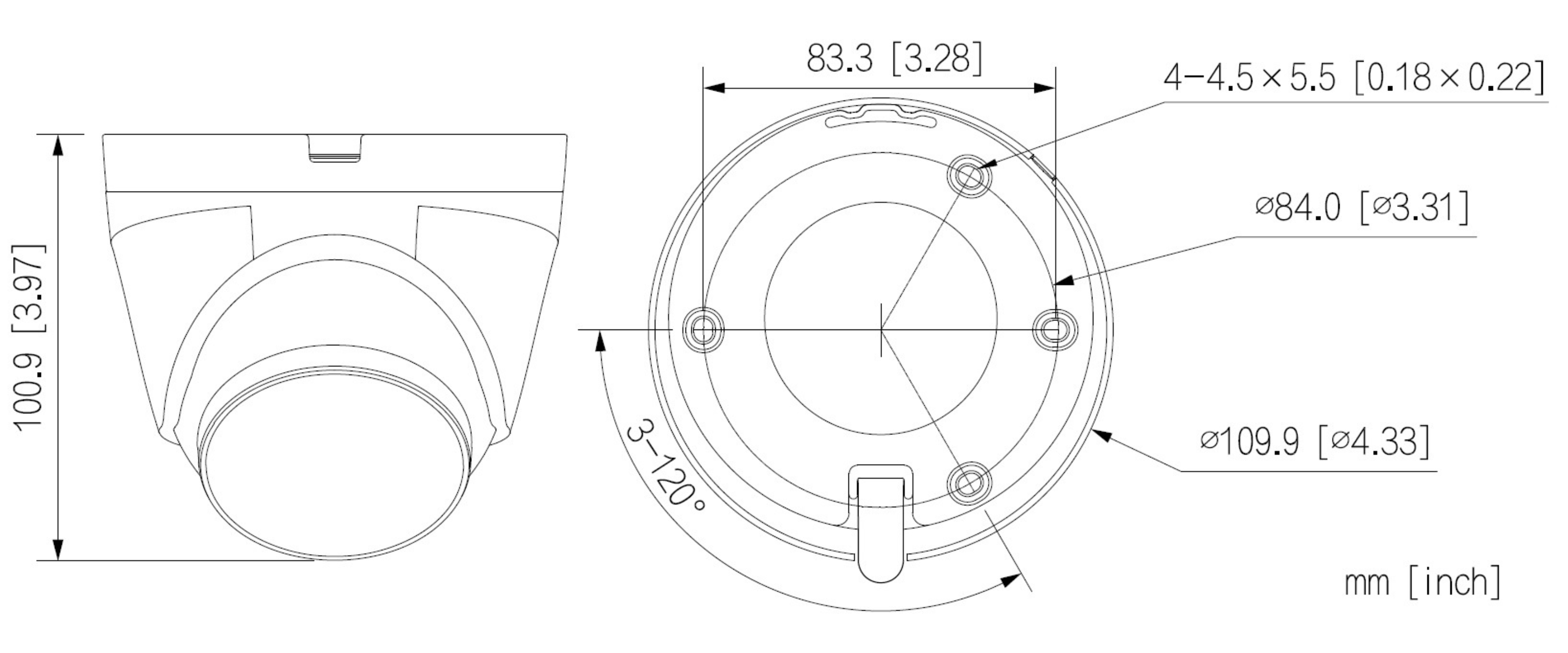 Resolution: 2560 x 1440, 2304 x 1296, 1920 x 1080 ; Sensor: 1/2.9 " ; View angle: 94 ° ; White light LED illuminator range: 30 m ; Range of IR illumination: 30 m ; Image compression method: Smart H.265+ ; Audio: Microphone built-in, Audio detection ; Power supply: PoE (802.3af), 12 V DC ;