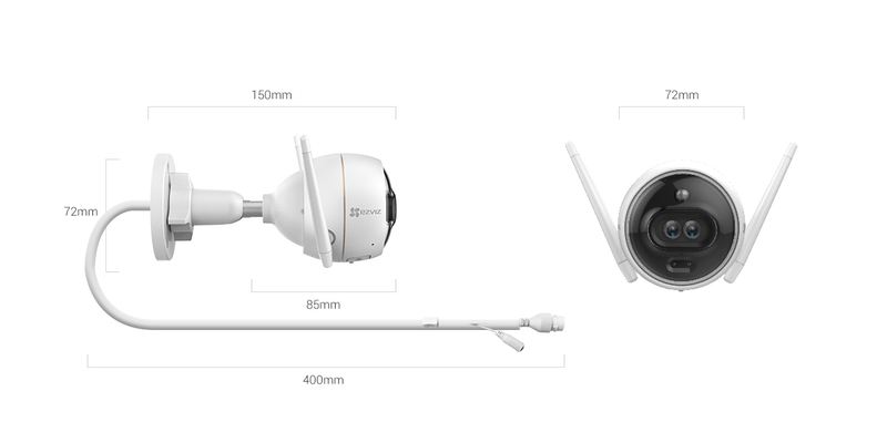• Тип: Wi-Fi камера • Тип подключения: Wi-Fi • Матрица: 1/2.7 Progressive Scan CMOS • Разрешения: 1920x1080 • Чувствительность: 0.02лк @(F2.0, AGC вкл), 0 лк с ИК • Фокусное расстояние: 2.8 мм, 4 мм, 6 мм • Угол обзора: 2.8mm, угол обзора: 105° (горизонтальный), 120°(диагональный) • Разрешение и частота записи: 1920x1080, 25 к/с • Формат записи видео: H.264/H.265 • Подключение к сети: Wi-Fi • Поддержка карт памяти: MicroSD до 256ГБ • WDR: Широкий динамический диапазон (съемка в условиях яркого света) • Соединение: Простая настройка через облако EZVIZ • Smart функция: Детекция движения • Камера с распознаванием людей и авто • Рабочая температура: От -30°C до +60°C Влажность 95% или меньше • Питание: DC 12В ±10%, 12Вт Maкс