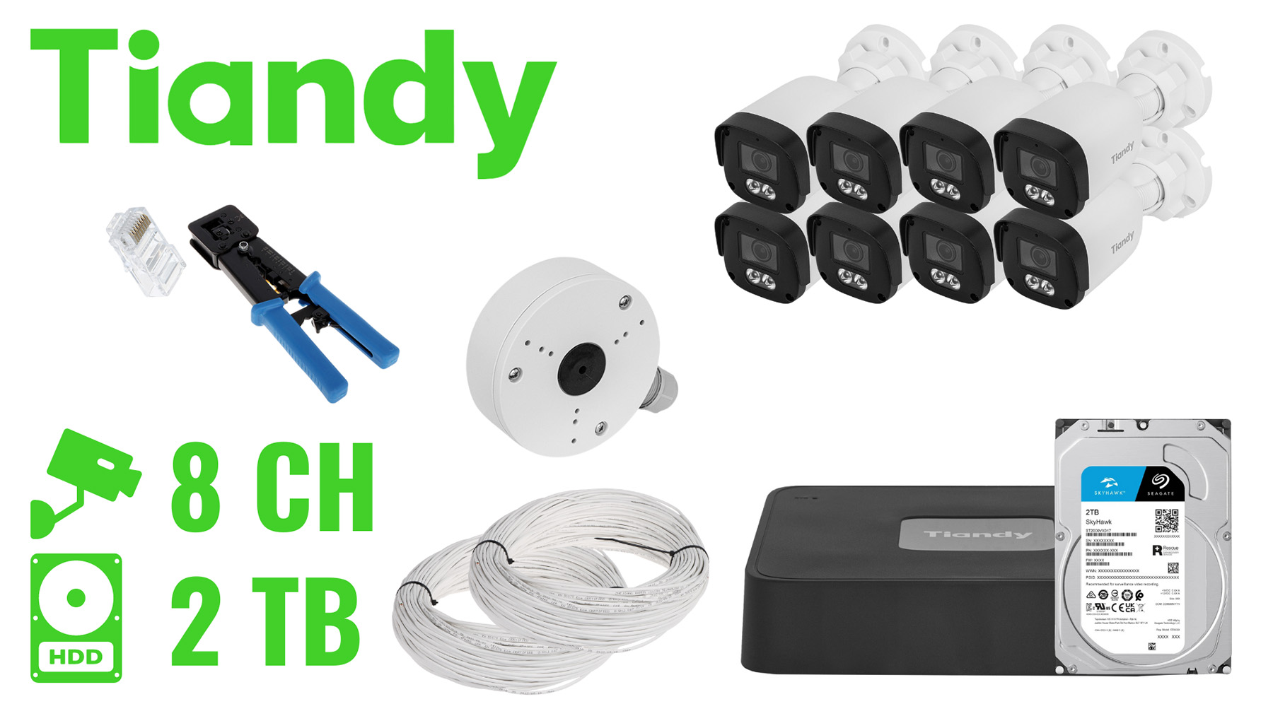 SURVEILLANCE KIT TIANDY-NVR10-8IPCB 8 CAMERAS + DVR TIANDY