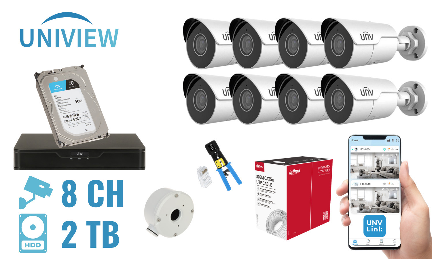 SURVEILLANCE KIT UNV-NVR08-8IPCB 8 CAMERAS + DVR UNIVIEW
