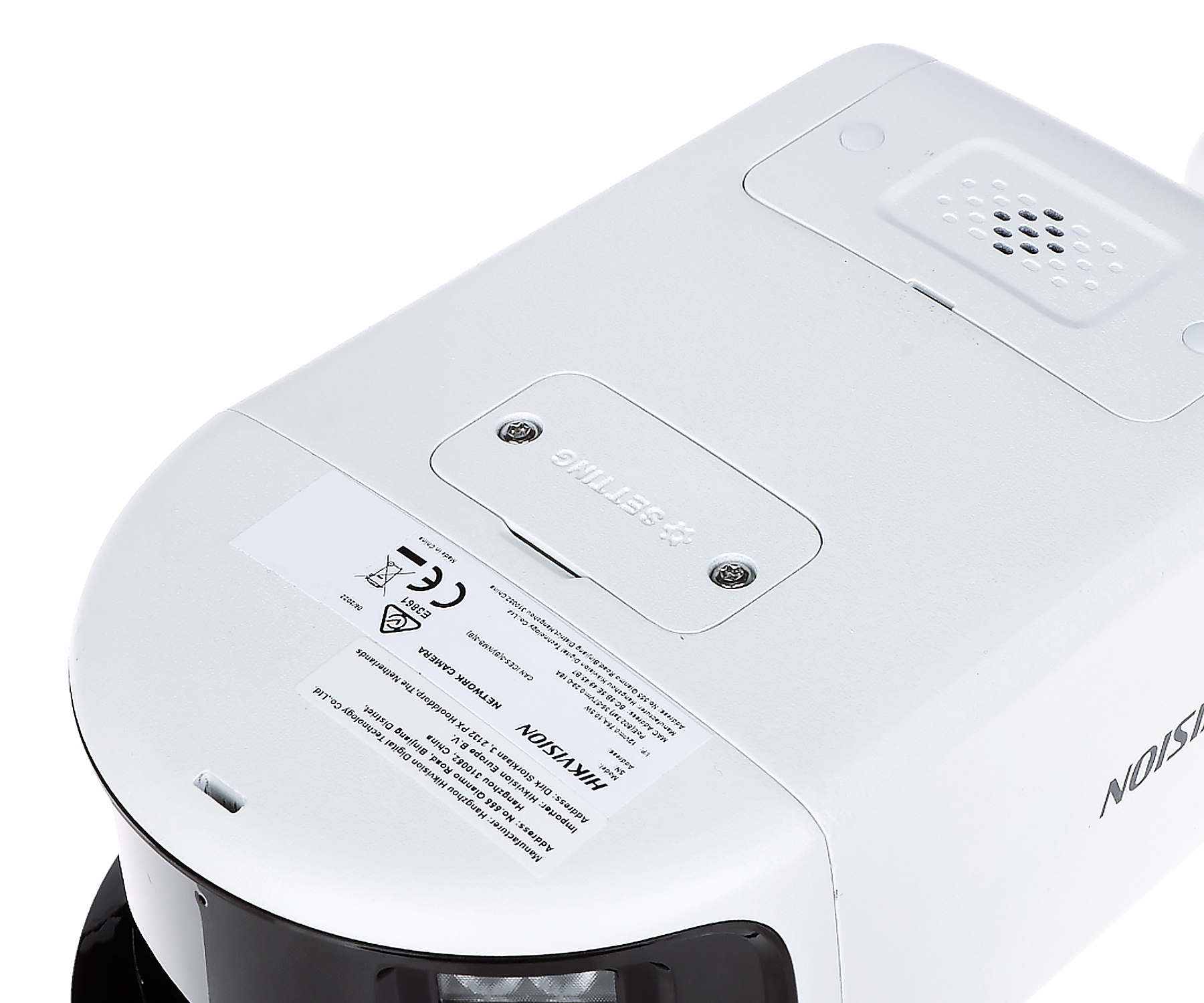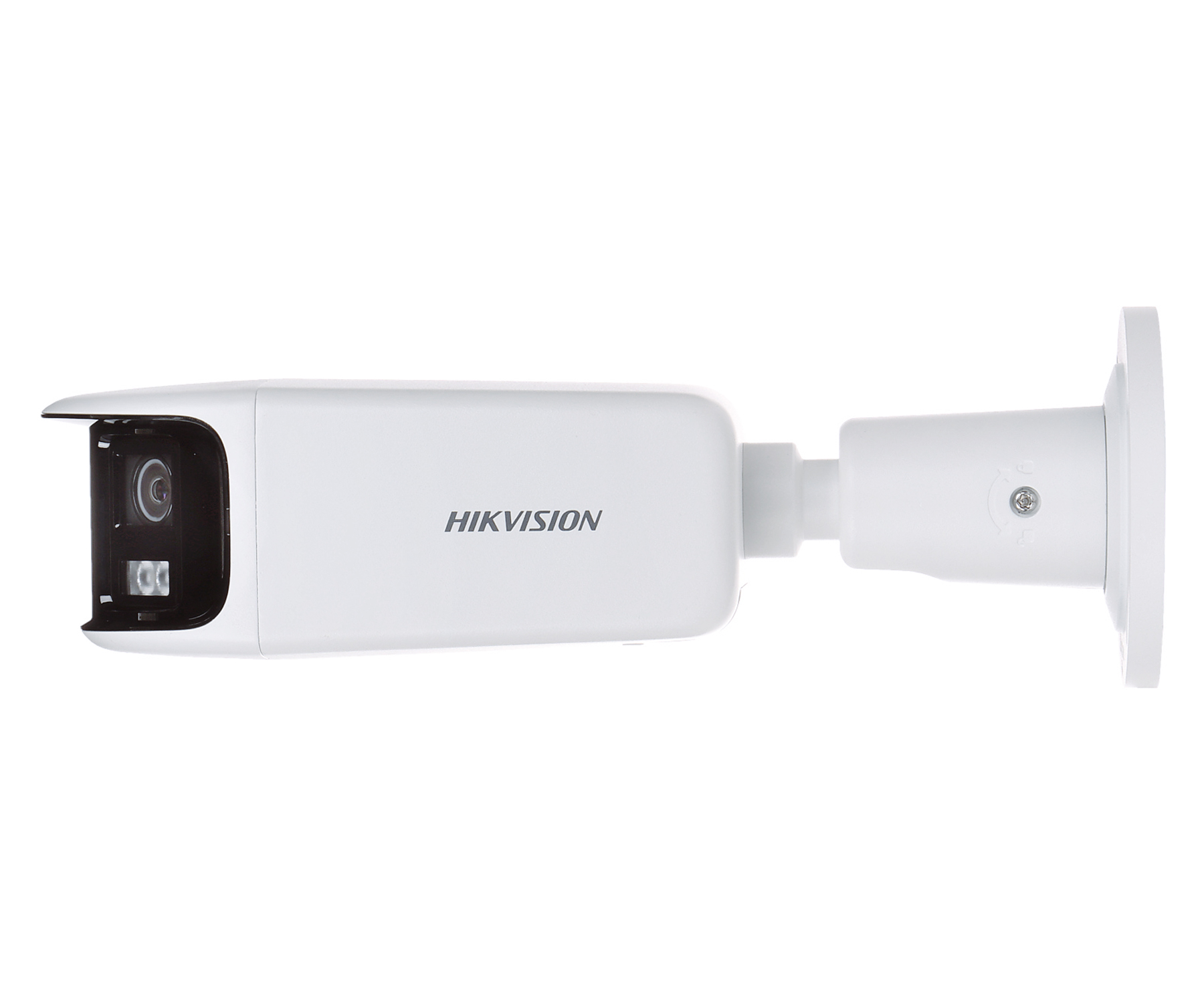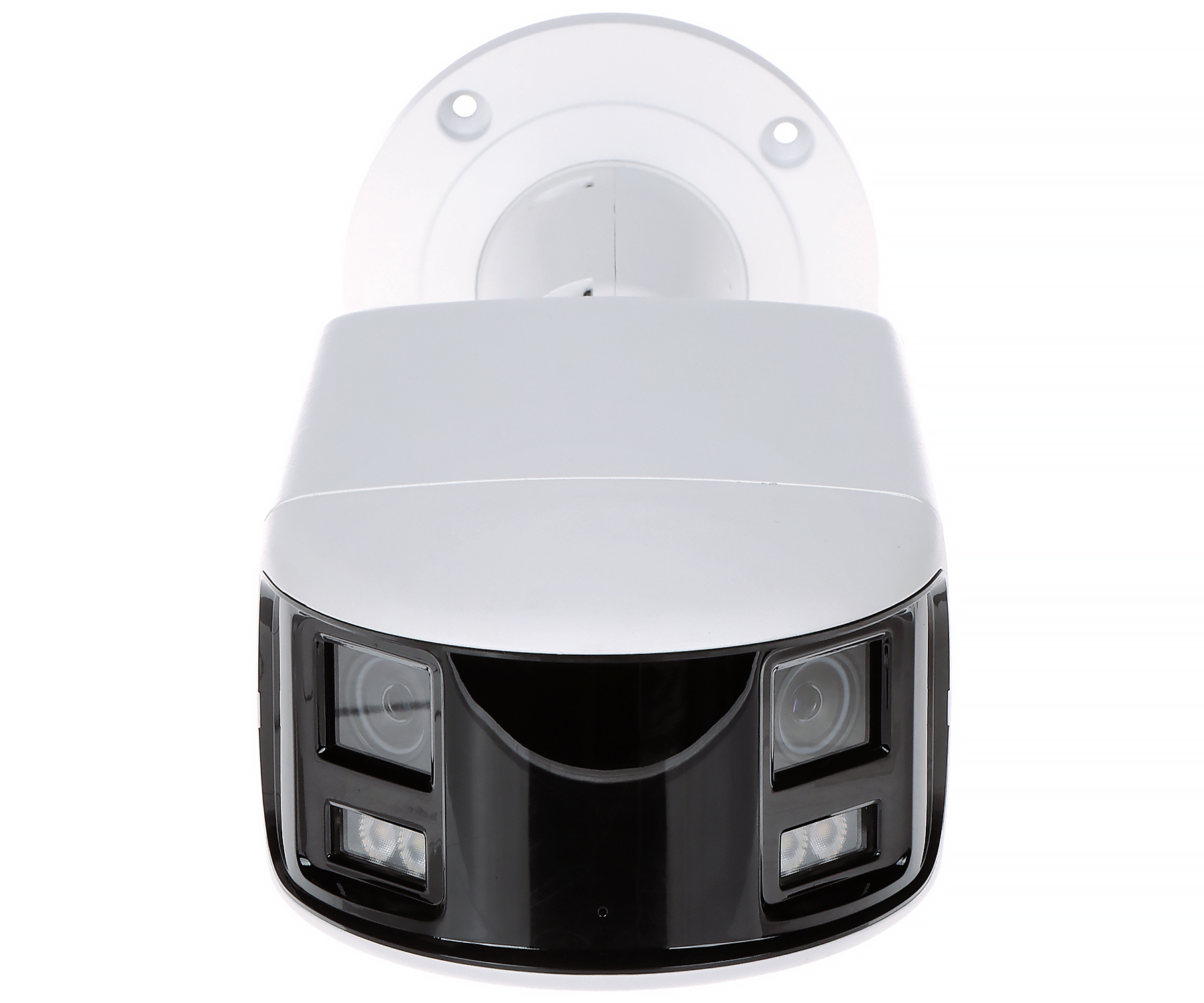 Resolution: 3140 x 1368 ; Sensor: 2 x 1/2.5 " ; View angle: 180 ° ; Range of IR illumination: 40 m ; Memory card slot: Micro SD card support up to 512GB ; Alarm inputs / outputs: 1 / 1 ; Audio: Microphone built-in, Bi-directional audio streaming support ; Power supply: 12 V DC, PoE (802.3af) ; "Index of Protection": IP67 ;