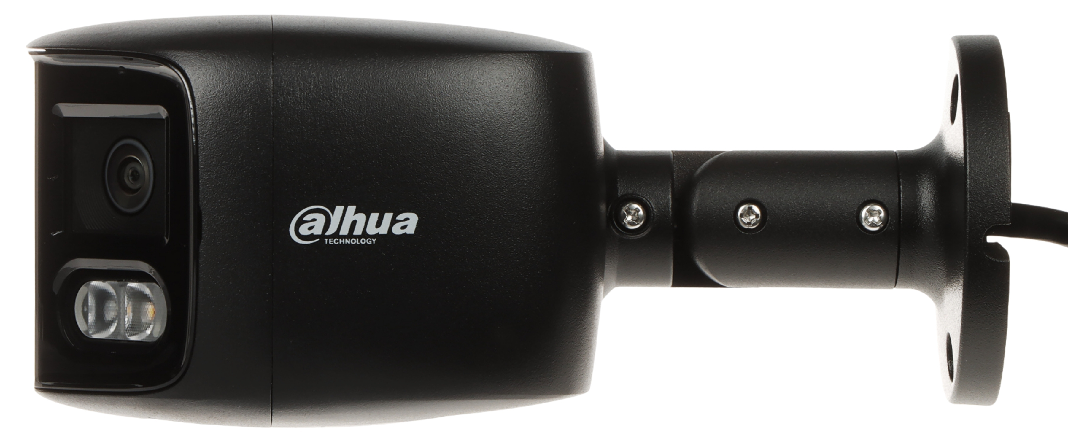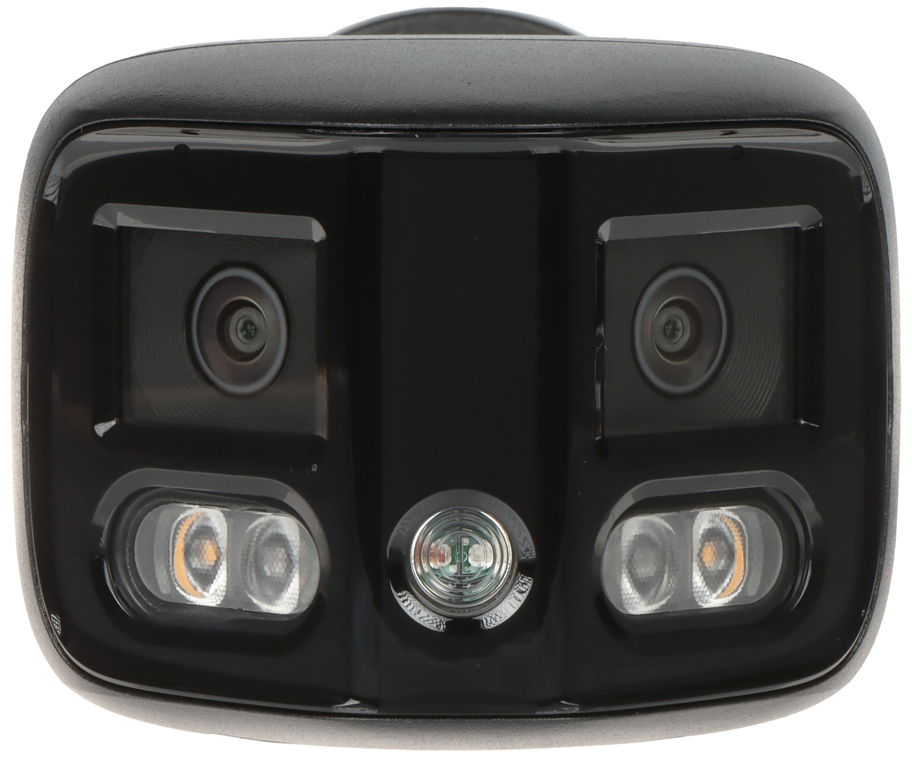 Resolution: 4096 x 1860, 3632 x 1632, 3040 x 1368 ; Sensor: 2 x 1/2.7 " ; View angle: 180 ° ; Range of IR illumination: 25 m ; White light LED illuminator range: 20 m ; Memory card slot: Micro SD card support up to 512GB ; Image compression method: AI H.265 ; Alarm inputs / outputs: 1 / 1 ; Audio: Microphone built-in, Bi-directional audio streaming support ; Main features: Light and sound alarm ; Power supply: PoE (802.3af), 12 V DC ;