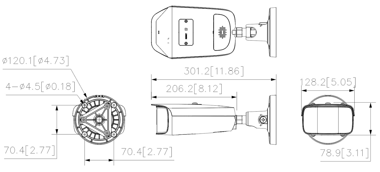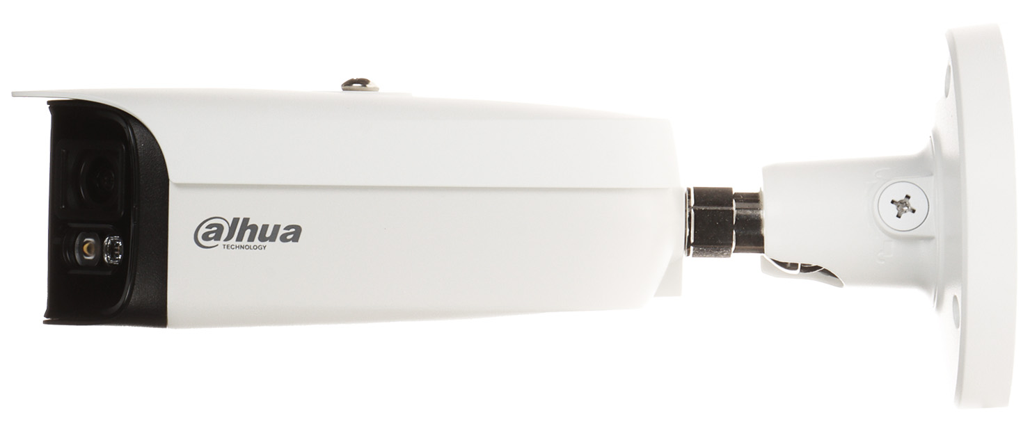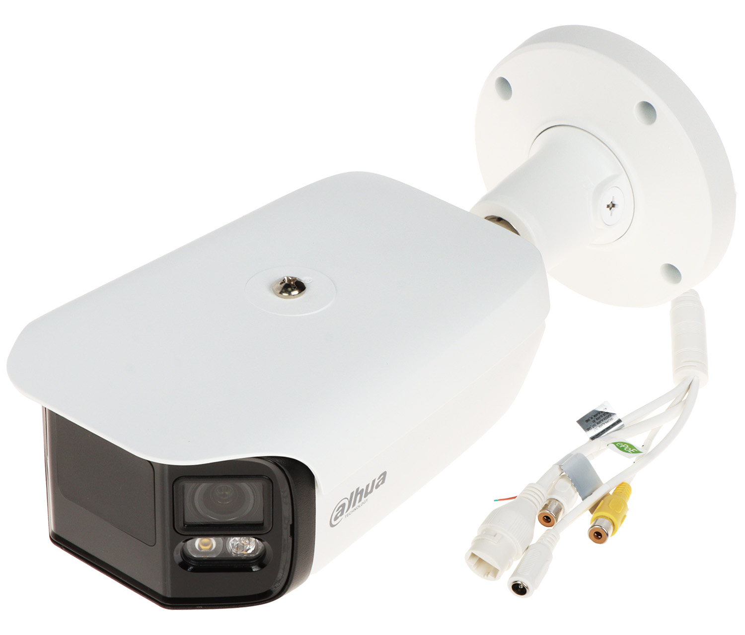 Resolution: 4096 x 1800, 3840 x 1680, 3840 x 1080 ; Sensor: 2 x 1/1.8 " ; View angle: 180 ° ; White light LED illuminator range: 40 m ; Memory card slot: Micro SD card support up to 512GB ; Image compression method: H.265+ ; Alarm inputs / outputs: 1 / 1 ; Audio: Microphone built-in, Bi-directional audio streaming support ; Main features: Light and sound alarm ; Power supply: PoE (802.3at), ePoE, 12 V DC ;
