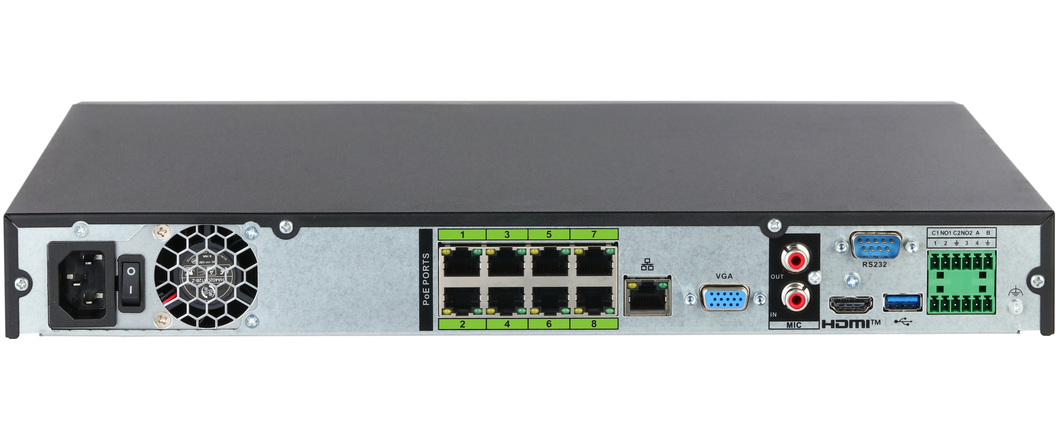 Series: WizSense NVR5 EI2 ; Supported resolutions: max. 32 Mpx ; Supported hard drives: 2 x 20 TB SATA ; Video outputs: 1 pcs HDMI 8K, 1 pcs VGA ; Audio inputs / outputs: 1 / 1 ; Image compression method: Smart H.265+ / Smart H.264+ ; Alarm inputs / outputs: 4 / 2 ;